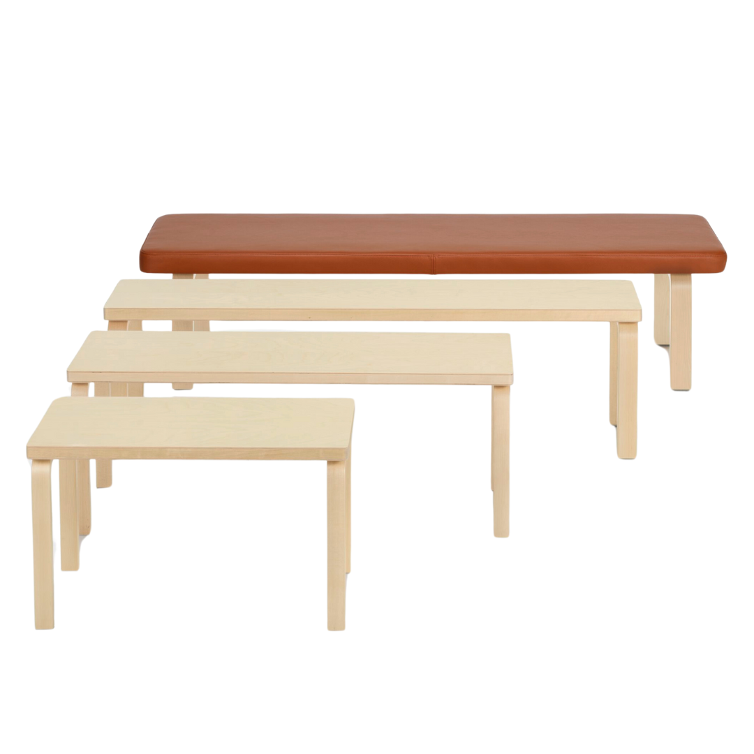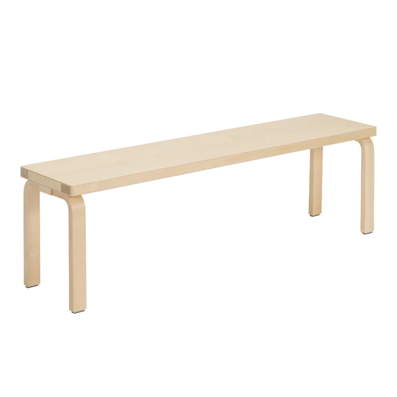The Bench 168B from Artek, designed by Alvar Aalto in 1945, is a masterpiece of a lightweight bench combined with a robust design.