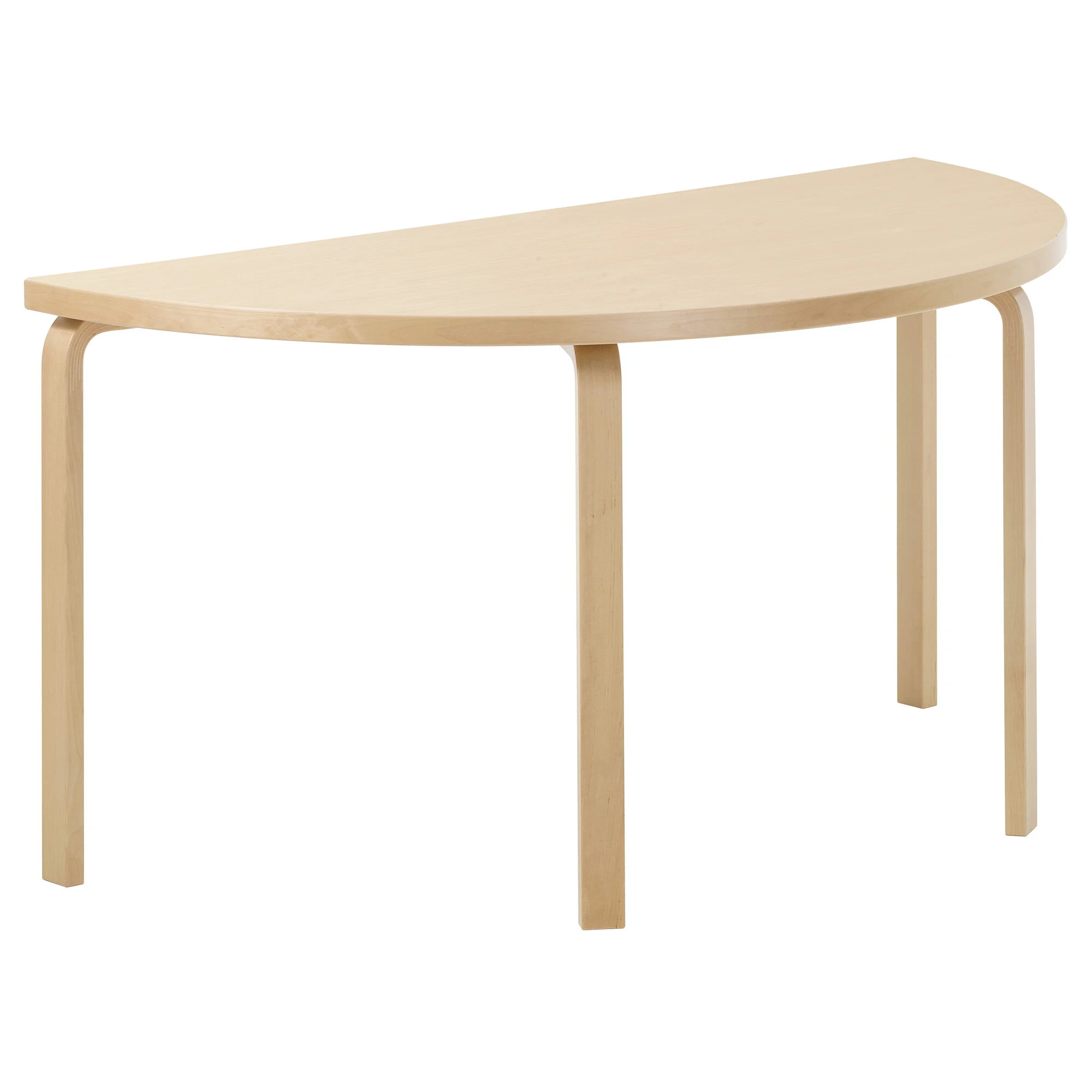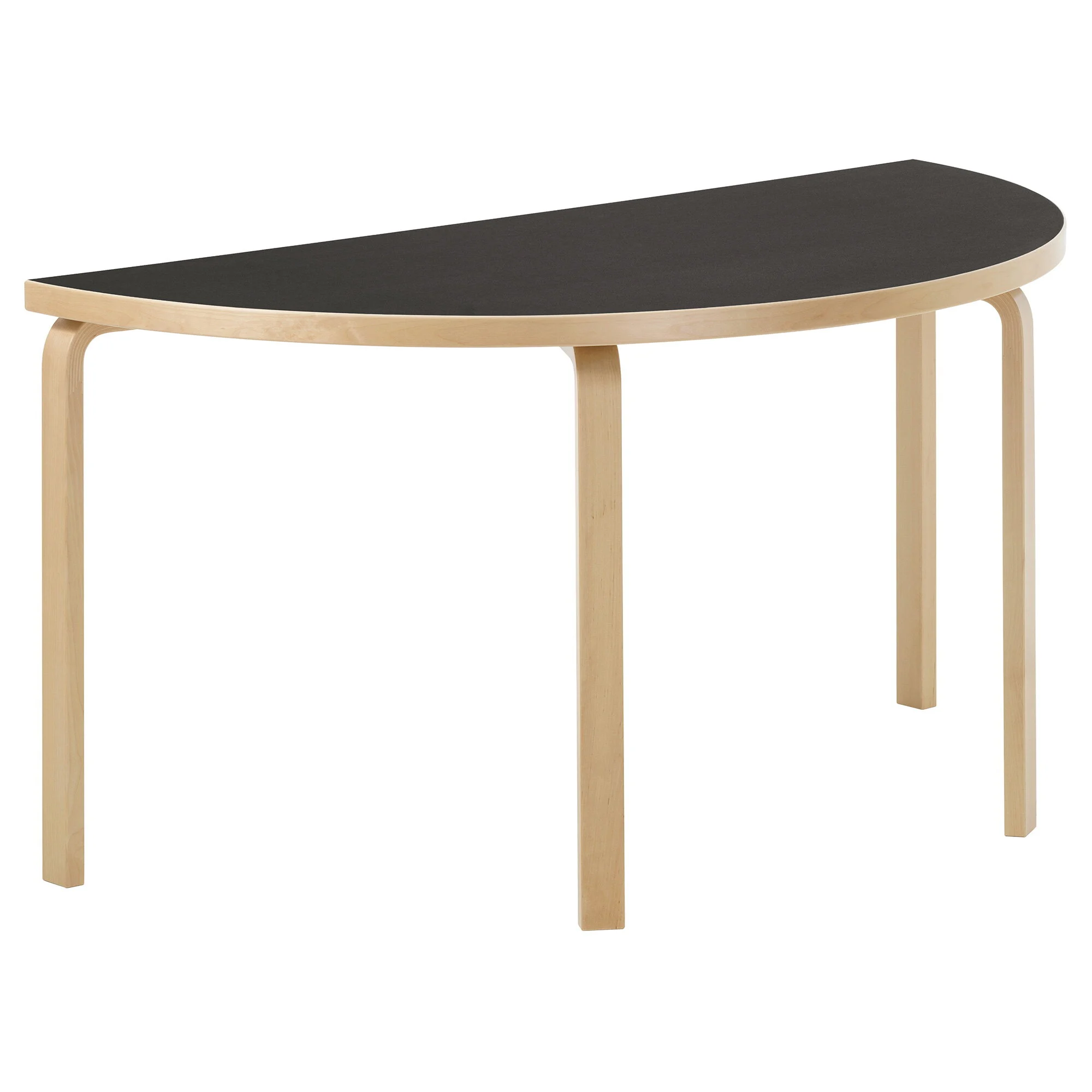 The semi-circular shape offers flexibility in use: place the table against a wall, combine two units to form a round table, or use it as an extension to the rectangular Aalto tables 81A and 82A.