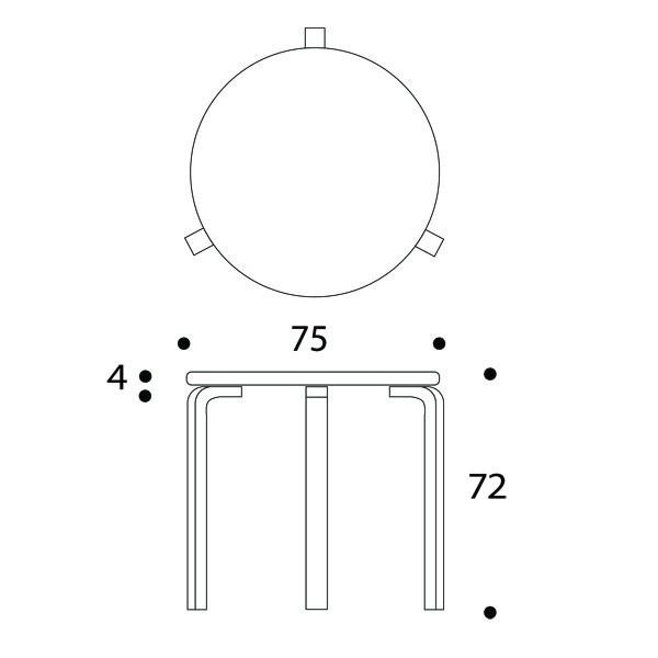 Thanks to its timeless and simple design, this table also comes into its own in contemporary home furnishings. The three L-shaped legs have a height of 72 cm, and the table top is 4 cm thick. The diameter of this leaf is 75 cm. You can order the table in various versions. The base of each is made of birch wood, but for the finish of the table top you can choose from birch veneer, laminate or linoleum.
