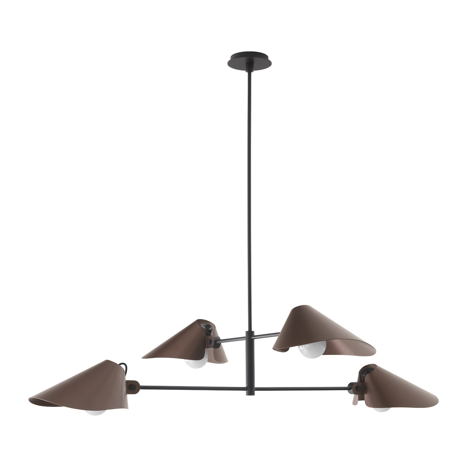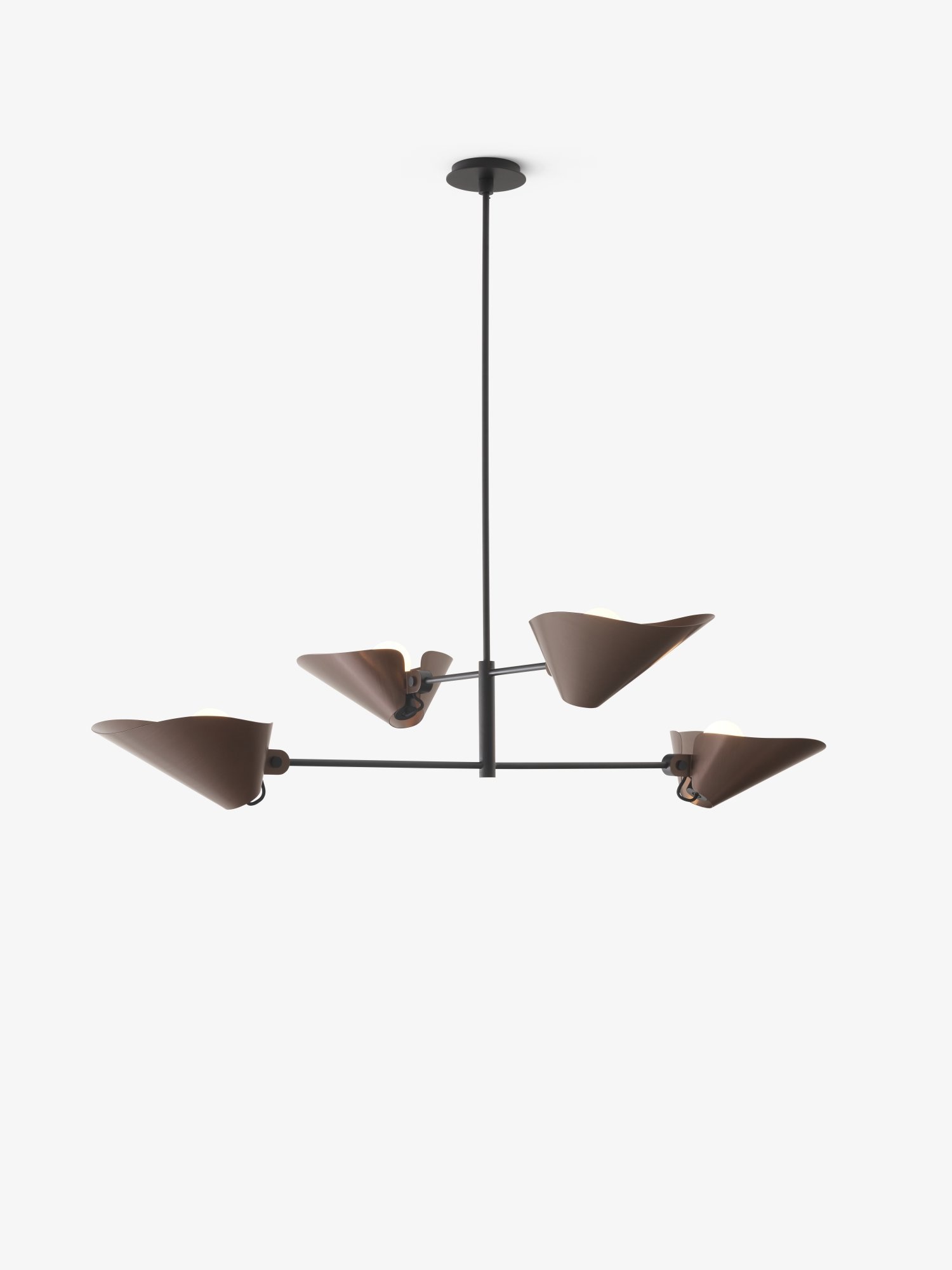 The Bonnet collection by &Tradition, designed by Space Copenhagen, is a modern series of chandeliers that perfectly combines simplicity and elegance. The sculptural design features curved aluminum shades that can be rotated up to 180°. This allows the light to be directed upwards, downwards, or at any desired angle—completely tailored to the atmosphere, space, and moment.