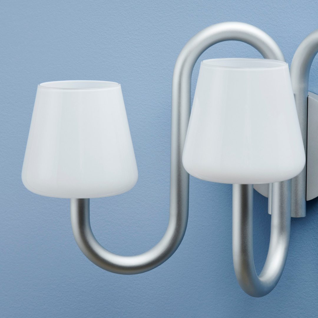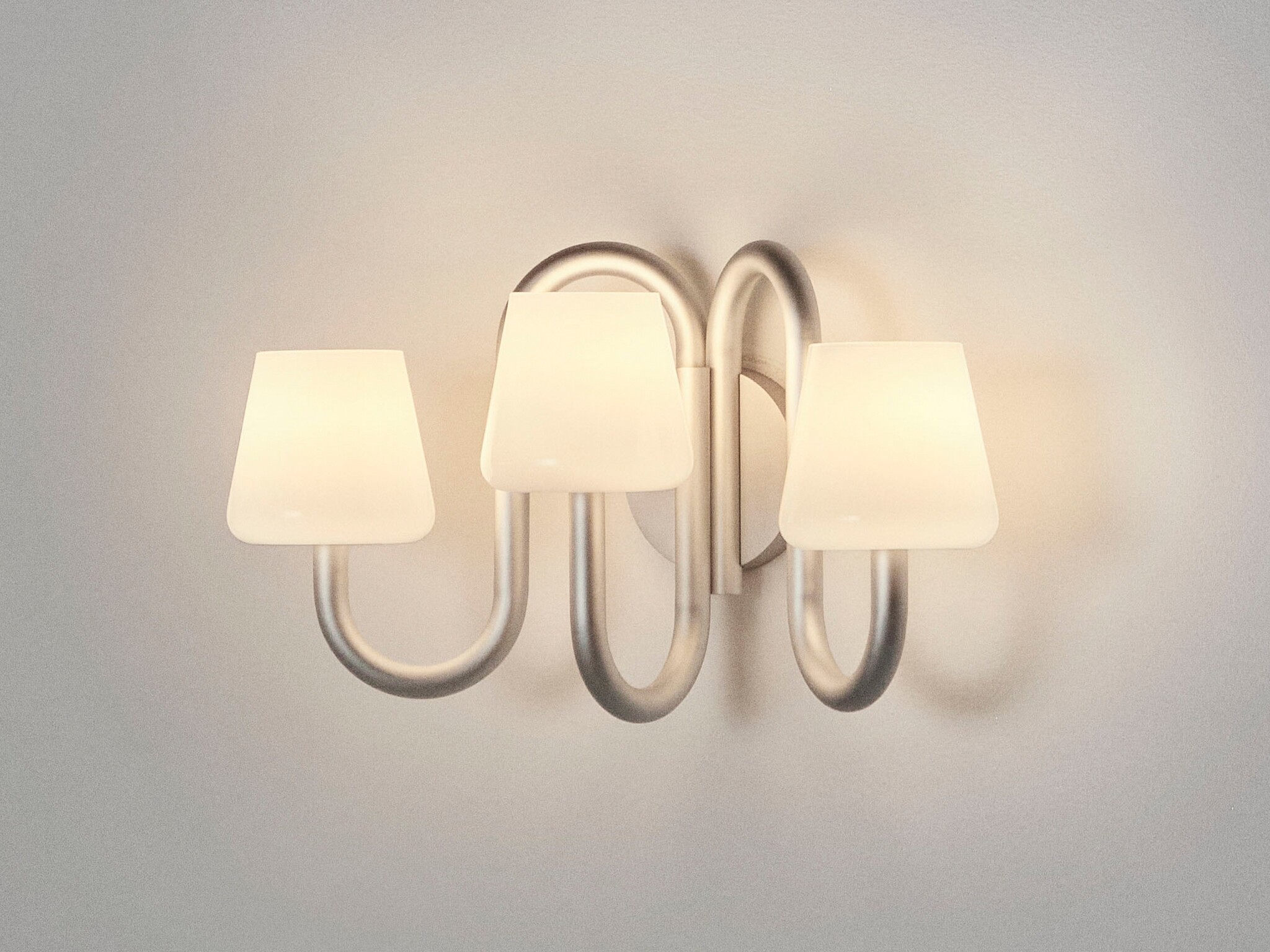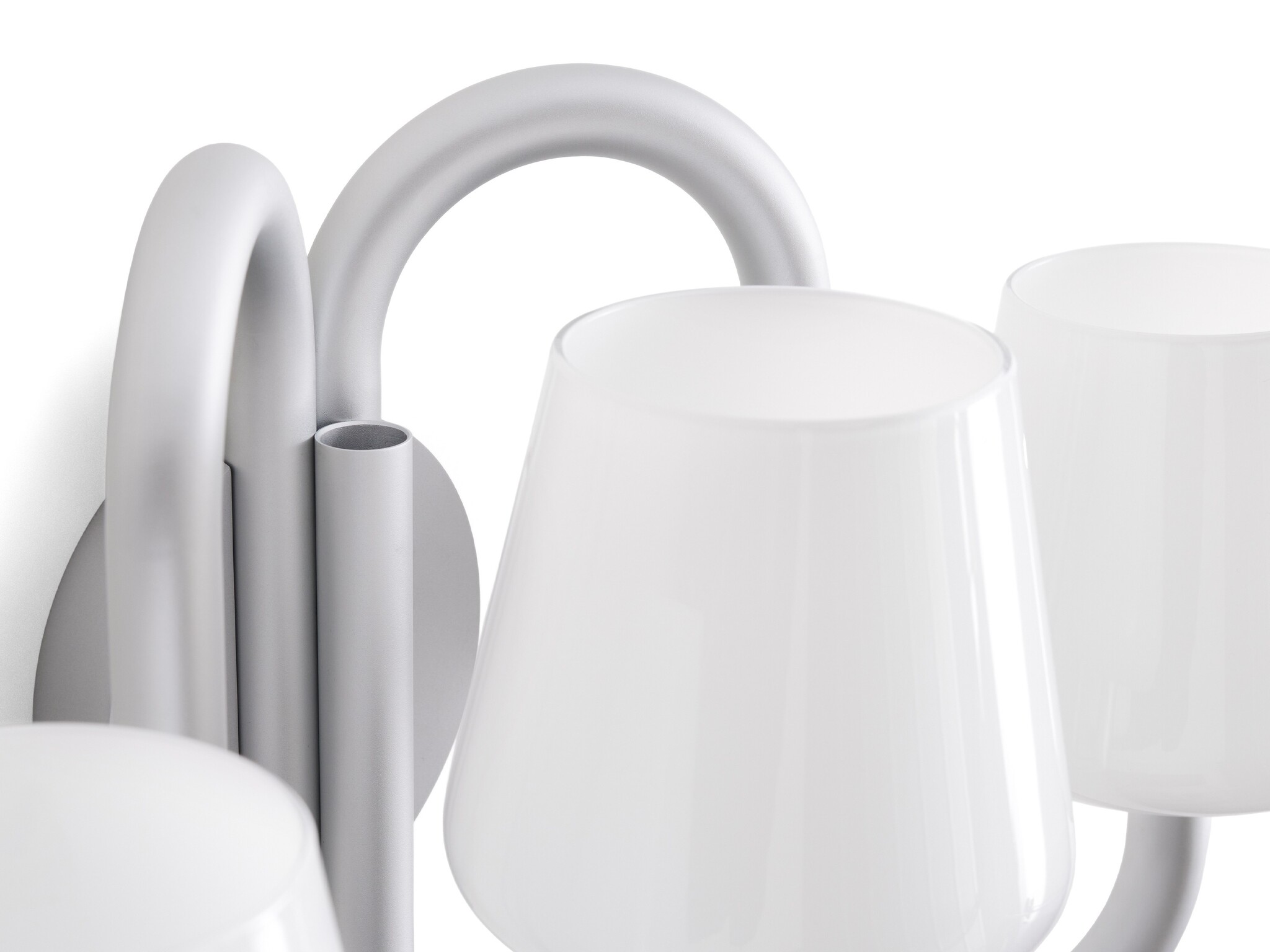 The beautifully playful curved shapes determine the character of the decorative Apollo wall lamp, also available as a chandelier.