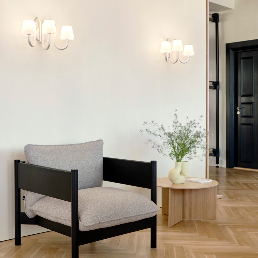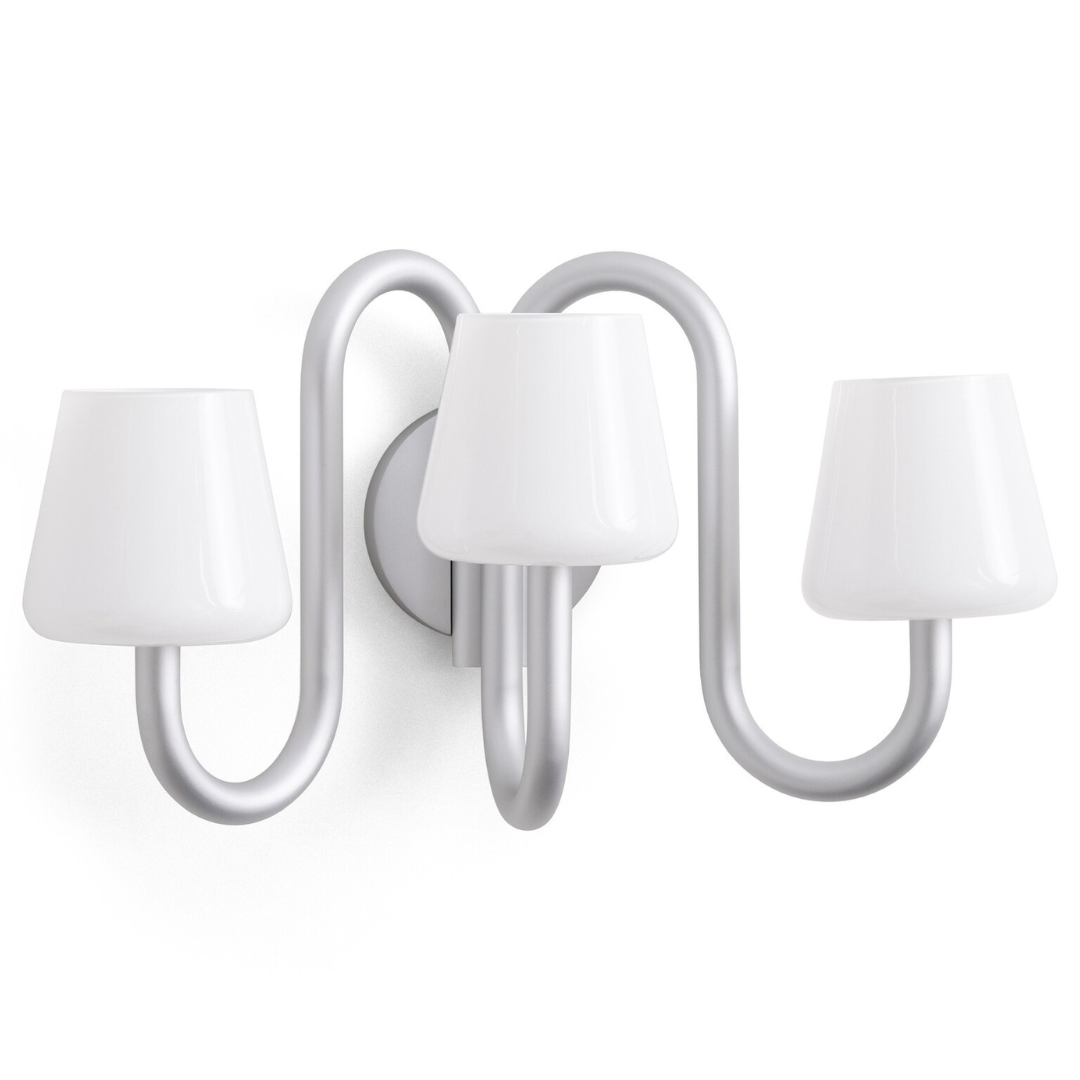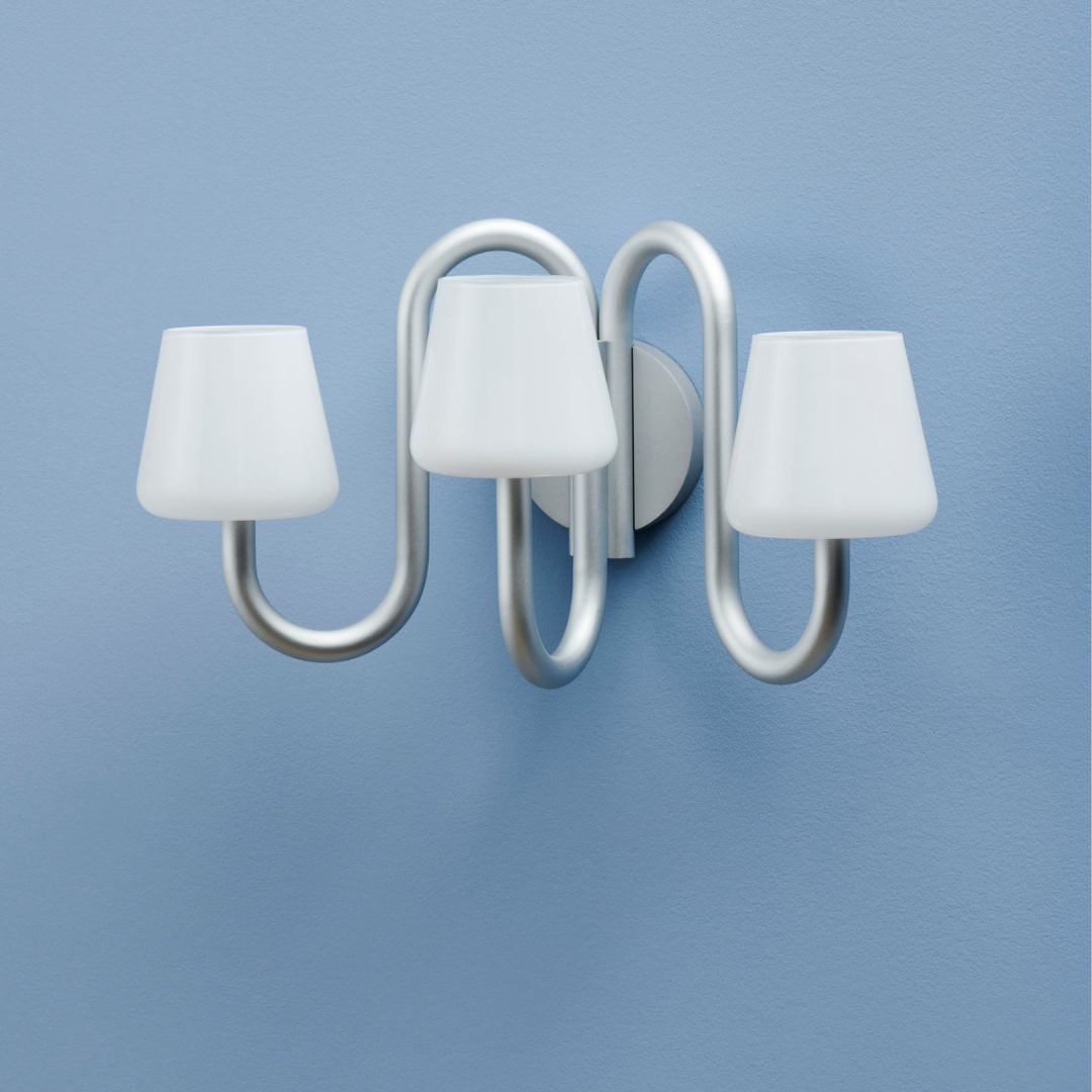 The beautifully playful curved shapes determine the character of the decorative Apollo wall lamp, also available as a chandelier.