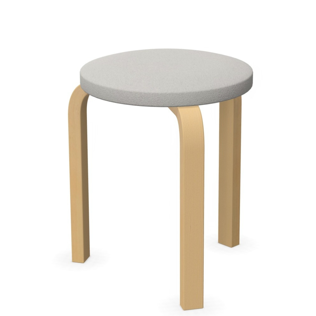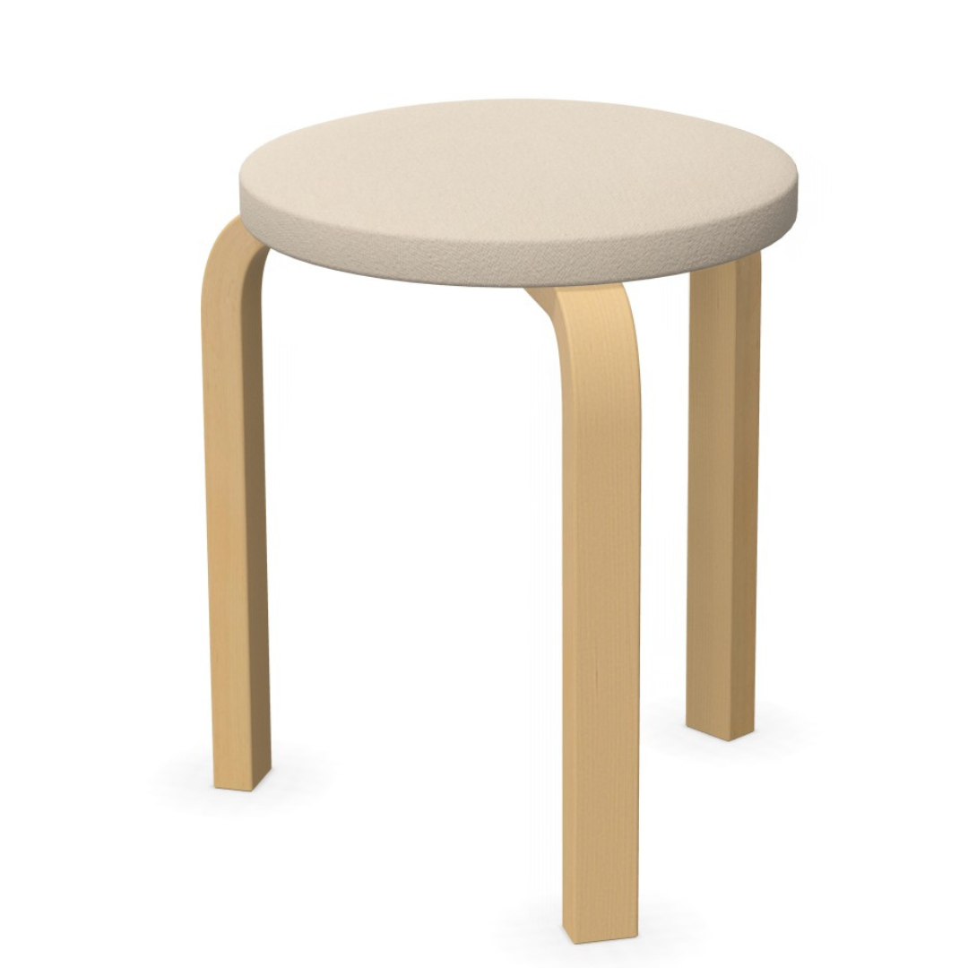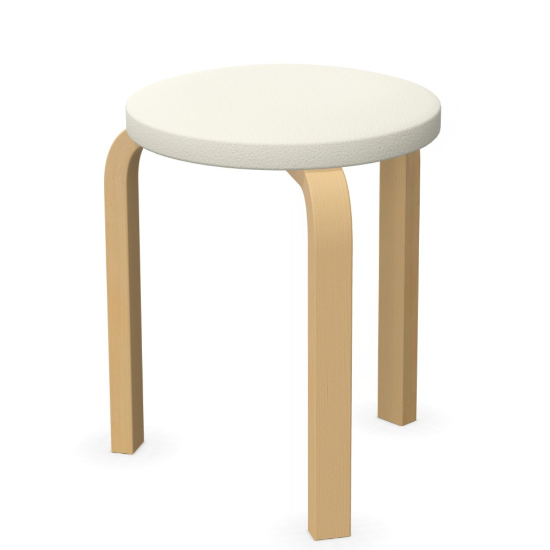 The stool 60 from Artek is a three-legged stool and is available with, among other things, a seat in timeless colours, all with clear lacquered birch legs. In addition, there are versions in completely clear birch, black or white, or with a seat of black linoleum or white laminate or upholstered with clear lacquered legs.