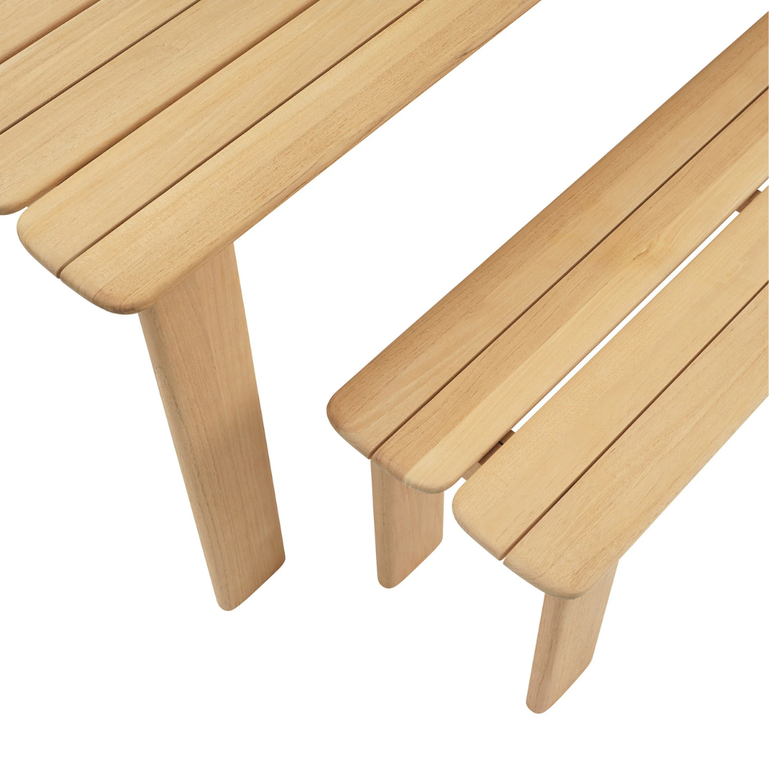 Made of FSC-certified teak, the Assemble Outdoor Bench is weatherproof and suitable for long-term use. The bench can be used as a standalone seating piece on a patio or garden path, but also looks perfect combined with the Assemble Outdoor Table for a harmonious look.