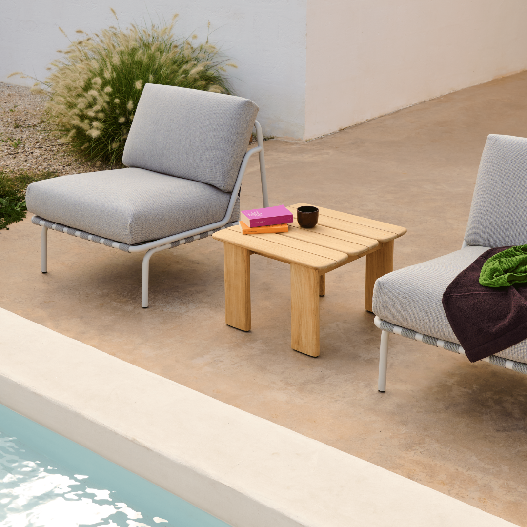 Crafted from FSC-certified teak, the Assemble Outdoor Coffee Table is weather-resistant and develops a beautiful, weathered patina over time. Available in square and rectangular versions, the table is versatile—from compact balconies to spacious patios and professional outdoor settings.