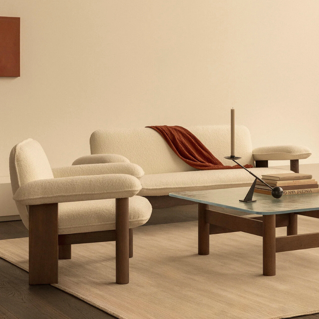 The low profile and enveloping embrace of the Brasilia Lounge Chair invites relaxation. Angled to enhance sitting, this lower version of the original Brasilia chair design rests on the collection’s characteristic solid wood frame that features rounded front legs, exaggerated armrests and textile or leather upholstery for a cosy and comfortable experience. At once iconic and modern in its expression, it takes its design cues from Scandinavian mid-century aesthetics and Brazilian modernism.
