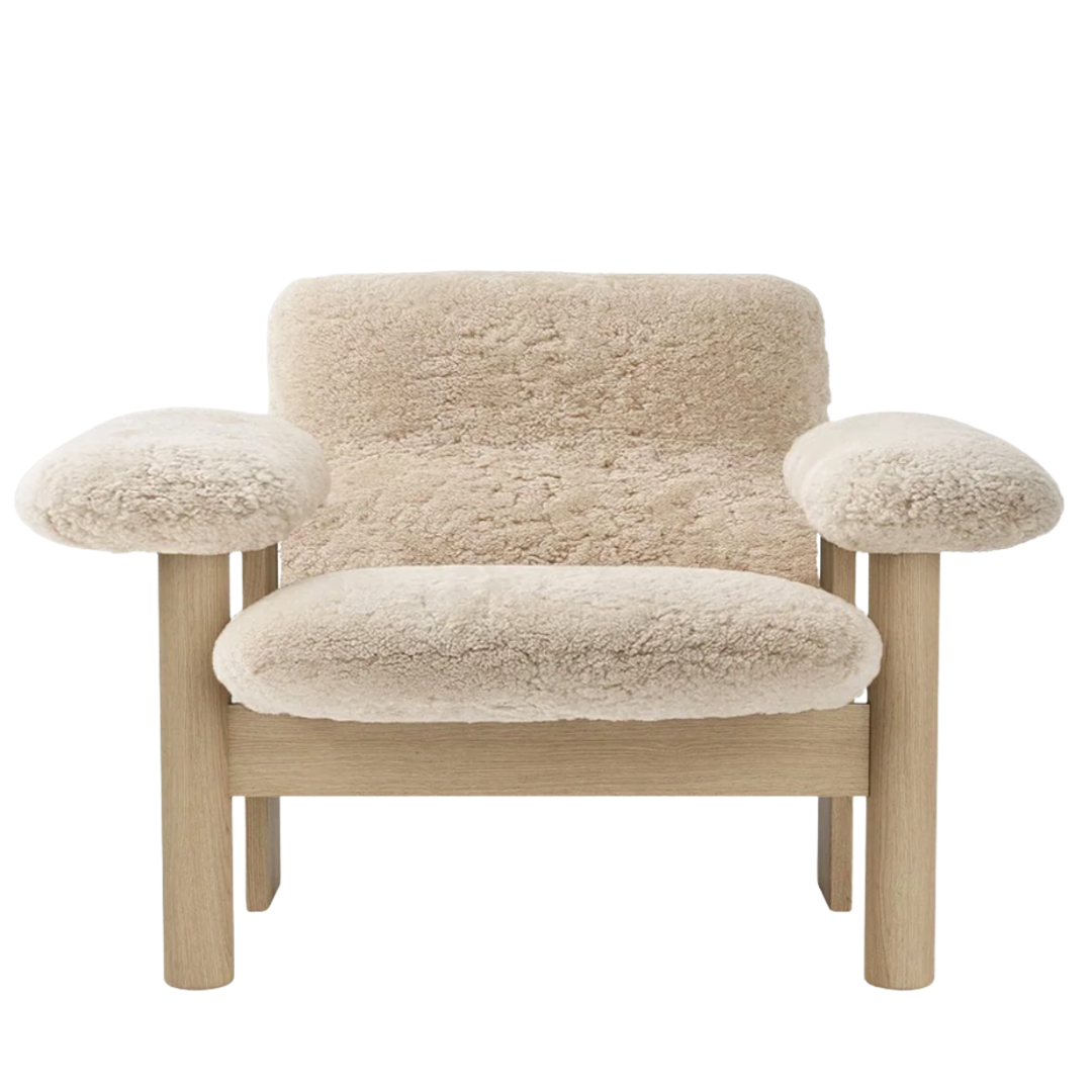 Available in a range of soft fabrics and sheepskin, the Brasilia Lounge Chair introduces style and comfort to any space.