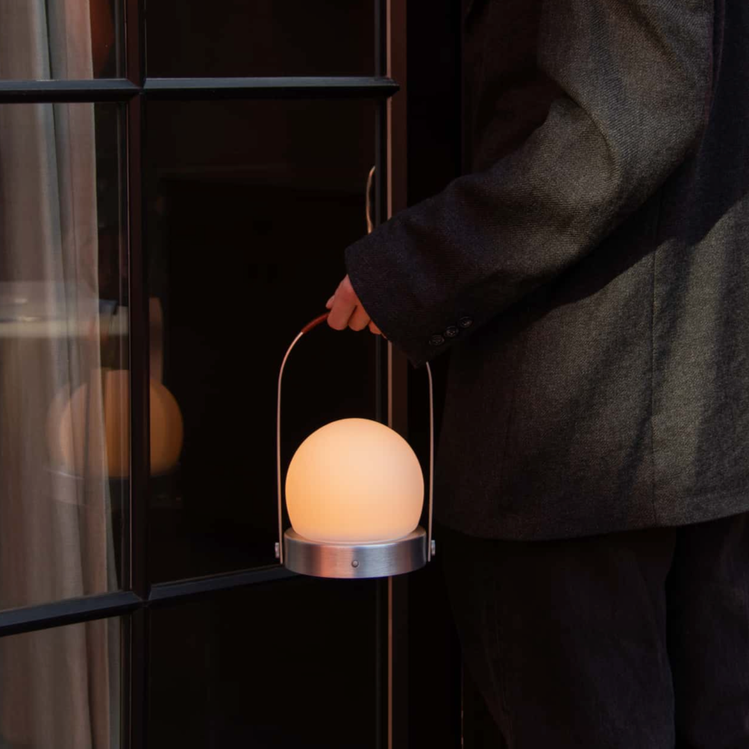 Menu’s Carrie table lamp comprises a white opal glass dome, a round steel base and a removable, arched handle. Designed by Norm Architects, Carrie is not only beautiful but also highly functional: thanks to the rechargeable LED unit, it can be used as a bedside lamp as well as a portable source of illumination for summer houses, picnics, and evening walks on the beach. The dimmable, lantern-like lamp is perfect for creating a cosy atmosphere, also known as hygge in Denmark.