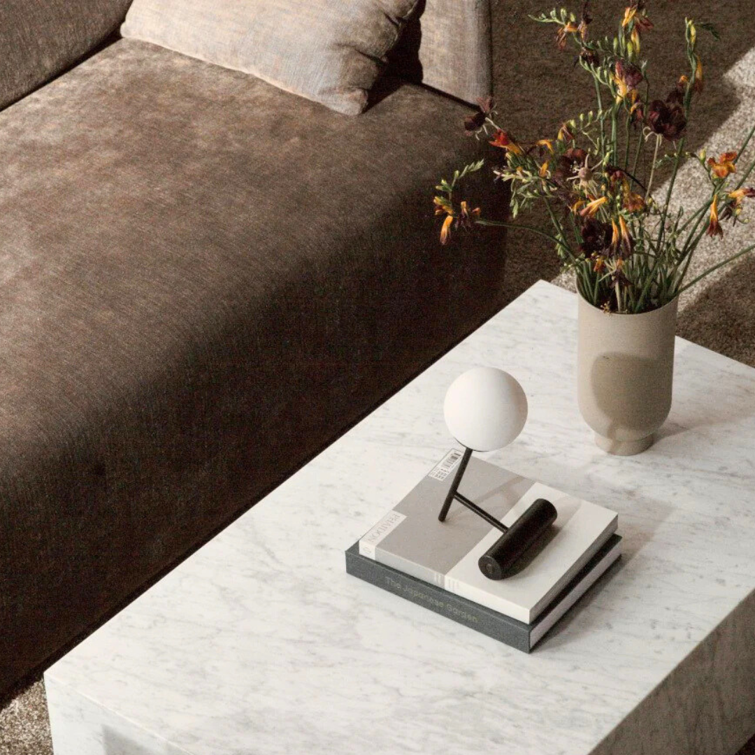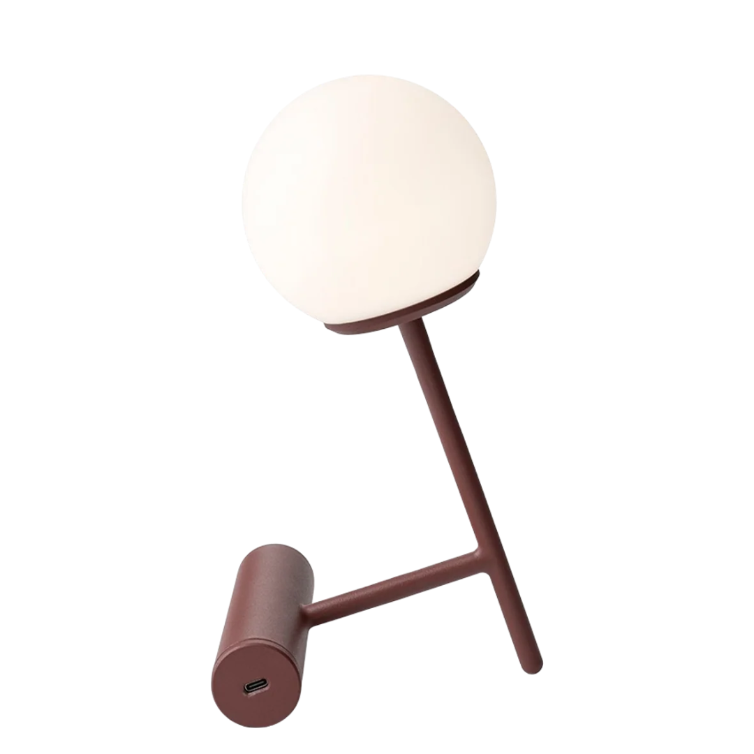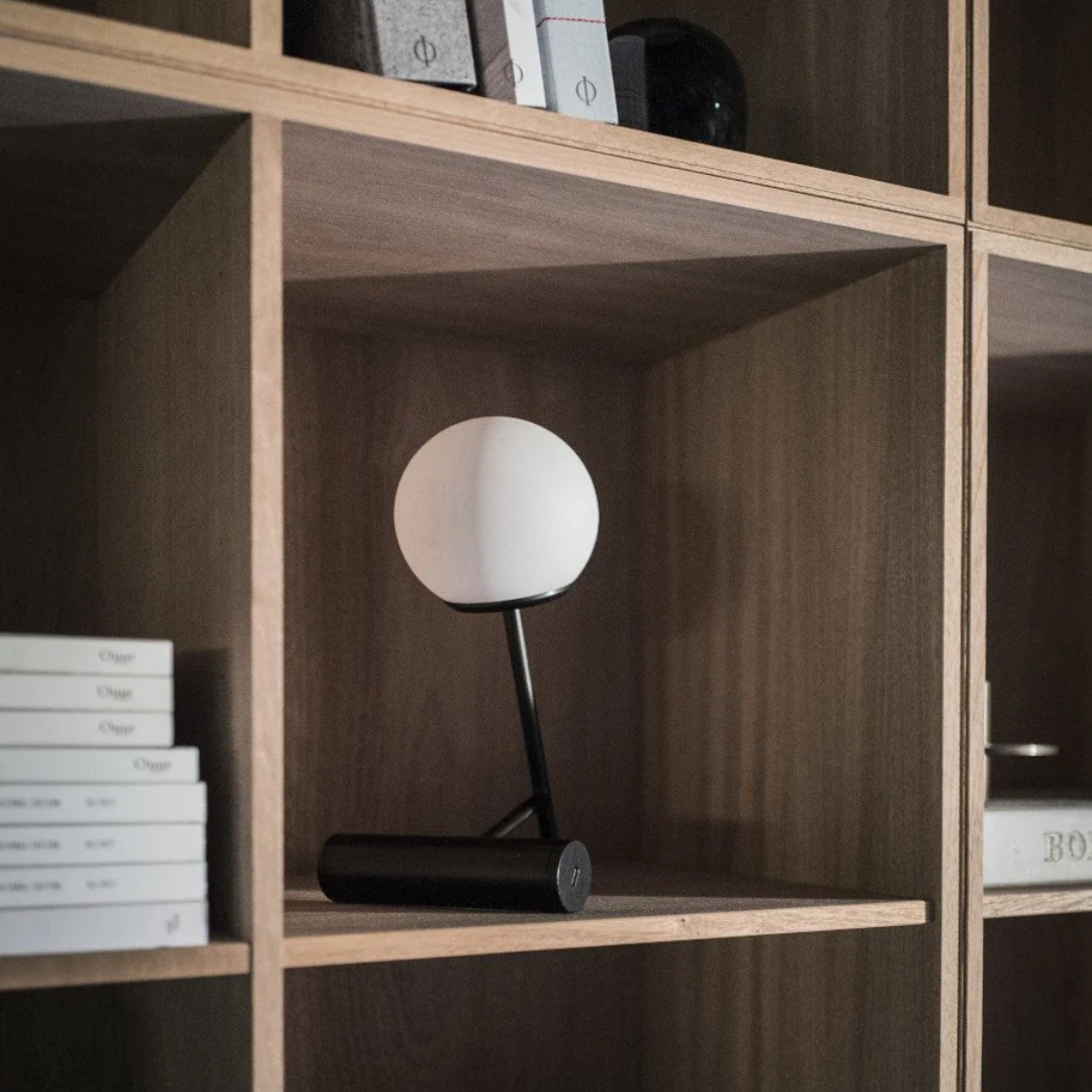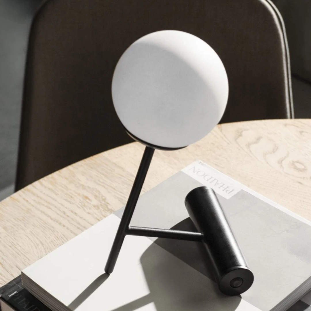 The Phare lamp of the Danish Audo is a design by Stanislaw Czarnocki, this is a wireless, easily portable table lamp whose geometric design combines a spherical diffuser with a diagonal metal base. The built-in LED unit of the Phare lamp is powered by a rechargeable battery and provides a pleasant feeling