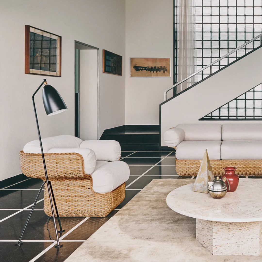 The Basket collection was first produced in the late 1960s by specialist rattan furniture maker Pierantonio Bonacina, who commissioned Colombo to design the basket. And now it is being relaunched by Gubi after decades of production interruption. Gubi's reissue stays true to Colombo's vision as presented in the original 1967 designs, while optimizing proportions for today's sizing needs.