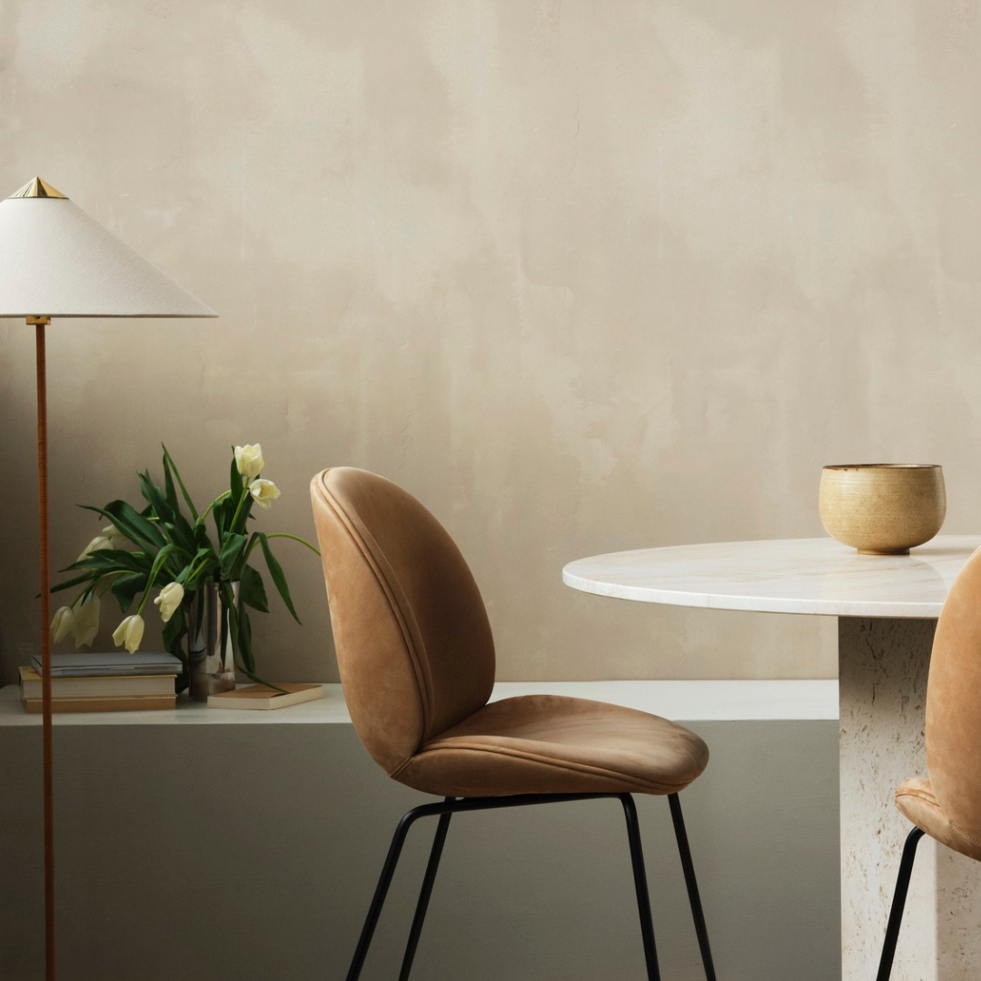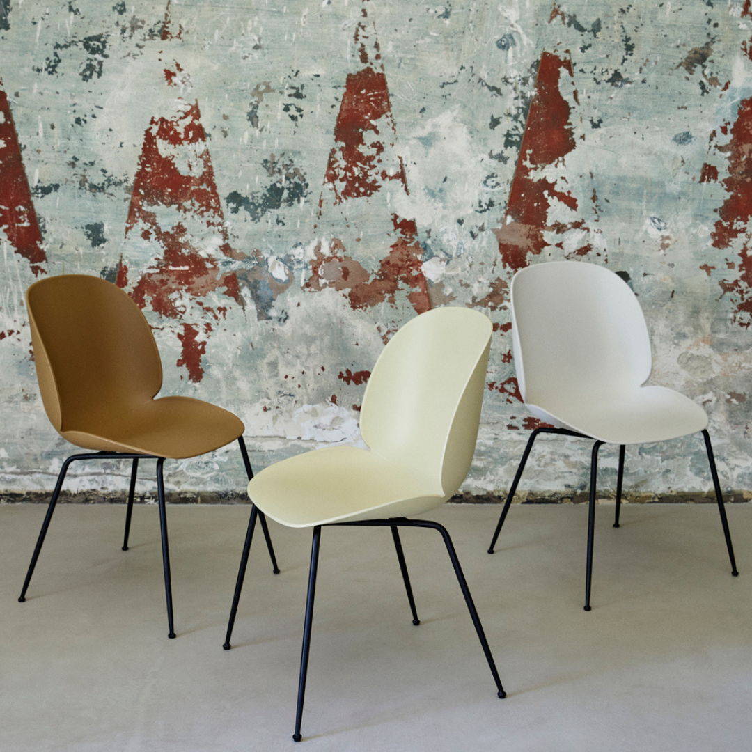 The Gubi's Beetle is a collection of elegant and comfortable chairs, designed by the Danish-Italian design duo Gam-Fratesi. Stine Gam and Enrico Fratesi, these took their inspiration for the playful chair design from the anatomy of beetles, which is reflected in the delicate, insect-like legs and the slightly curved shell. Launched in 2012, the Beetle chair is suitable for a variety of uses and spaces and is now available in new colors and materials.