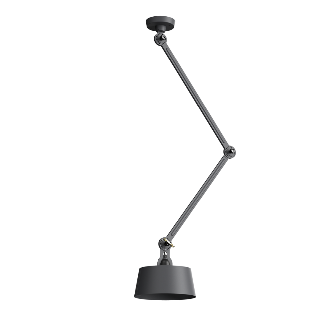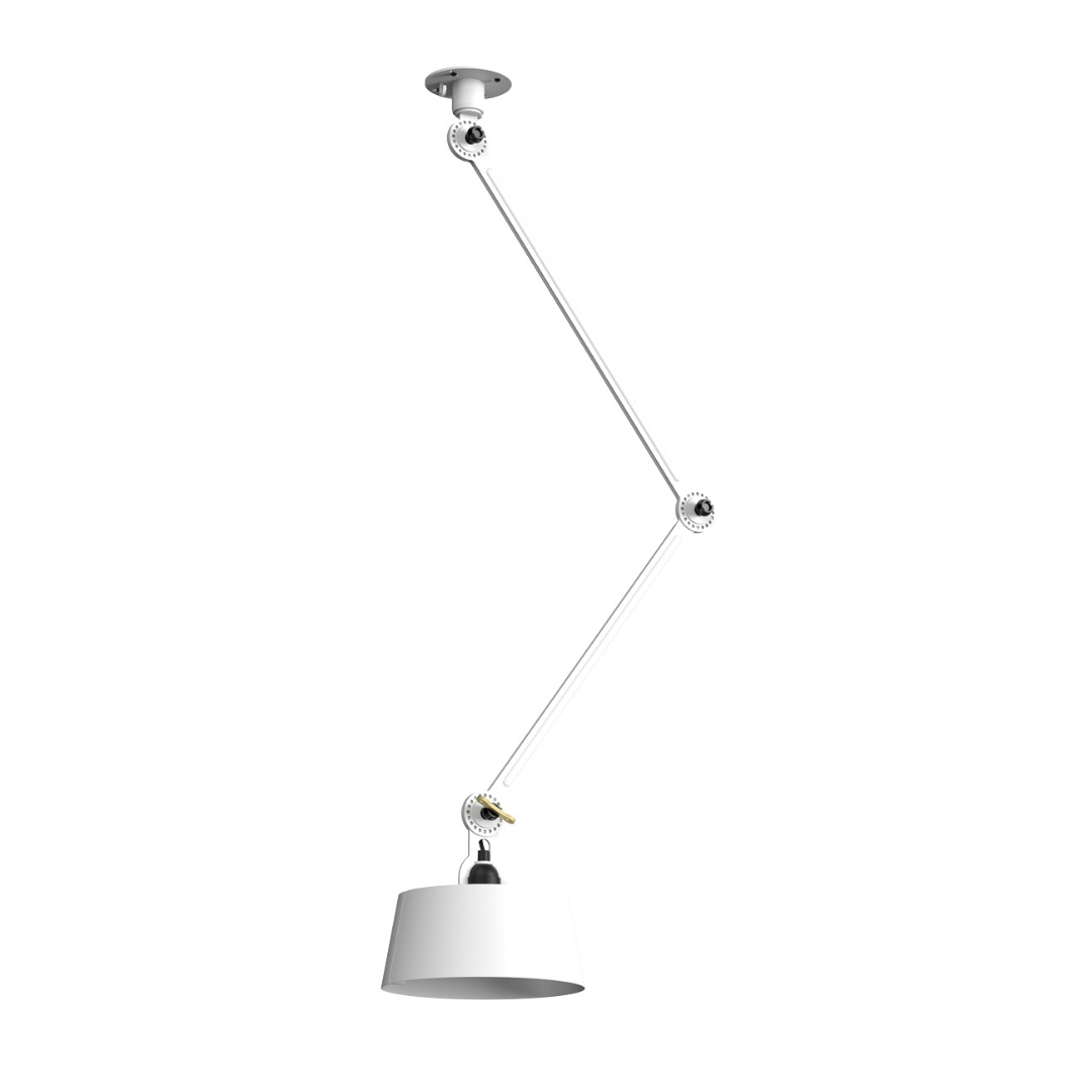 The adjustability ensures that the lamp can point in any direction. The arms of the lamp are made of powder-coated steel and the lampshade of powder-coated aluminum. The lampshade is open at both the top and the bottom, creating a beautiful play of light and shadow.