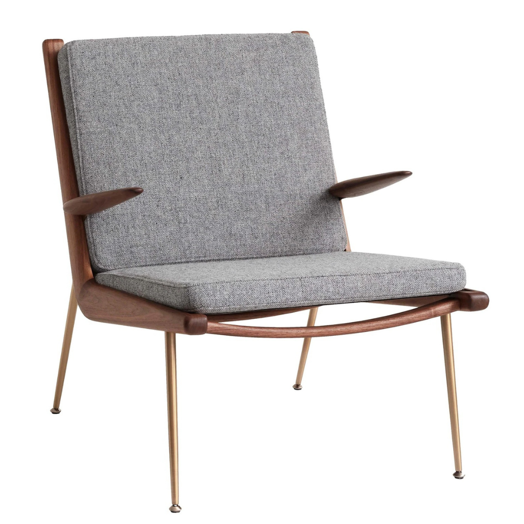 Thanks to its compact dimensions and warm appearance, the Boomerang lounge chair is perfect for living rooms, reading nooks, bedrooms, or stylish hospitality settings.