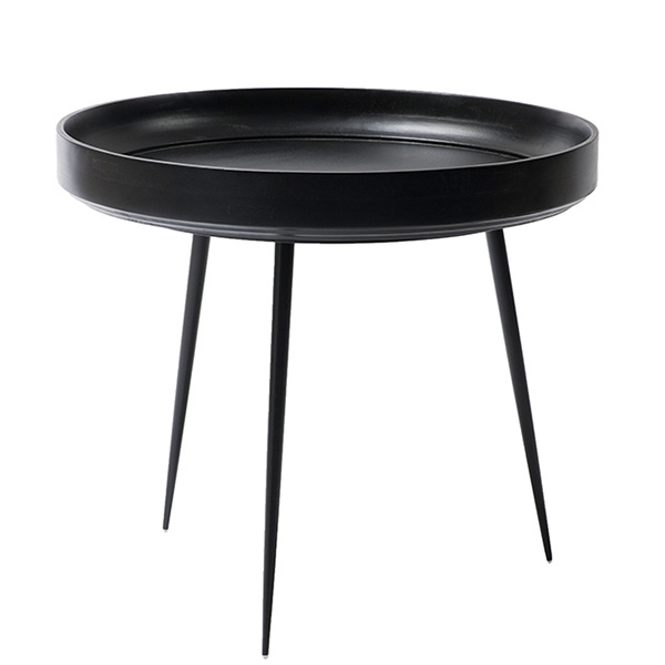 The top of the table has been carefully turned and is made of sustainably harvested mango wood and the finish is done with a lead-free water-based PU lacquer. The slim steel legs that support the top can be detached for easy transport and storage. The Bowl table is an eye-catching design.