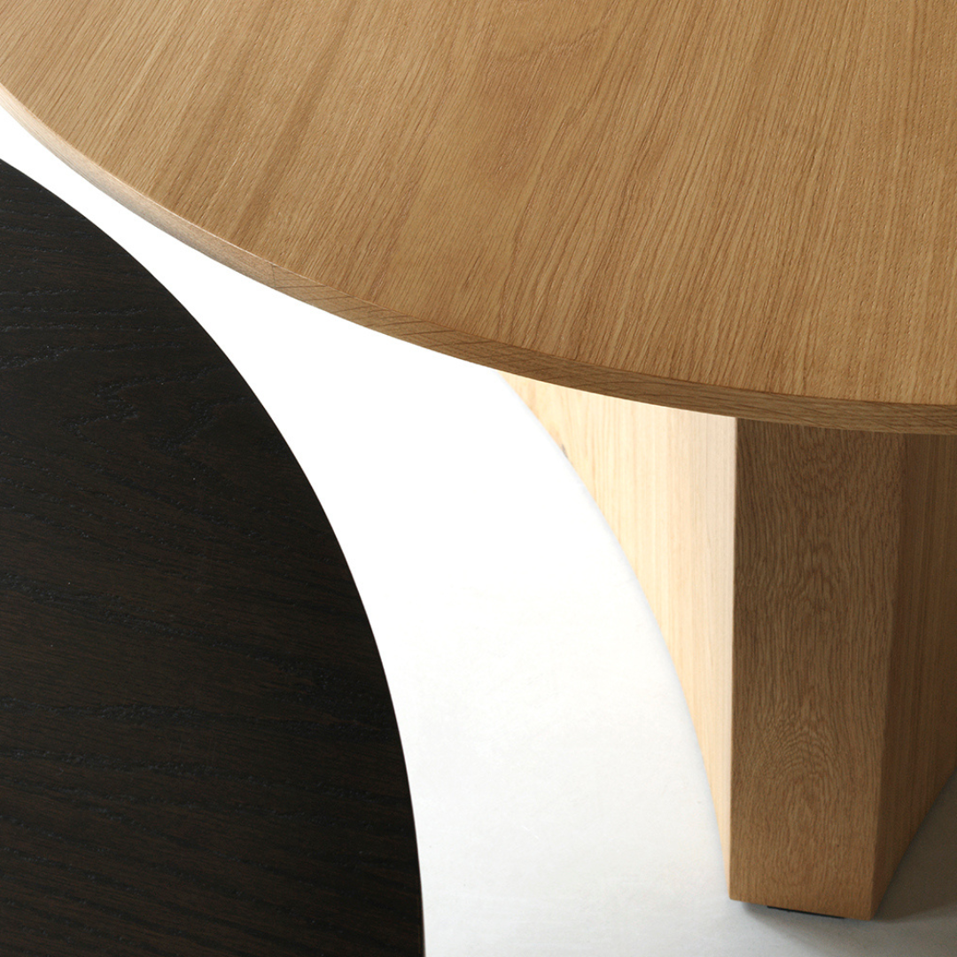 Bue Table is a remarkable dining table that embodies sculptural elegance. With its unique design and exquisite craftsmanship, Bue Table offers a captivating centerpiece for any dining setting. Crafted from high-quality oak veneer, Bue Table features a round tabletop resting on a decorative triangular base with rounded sides.