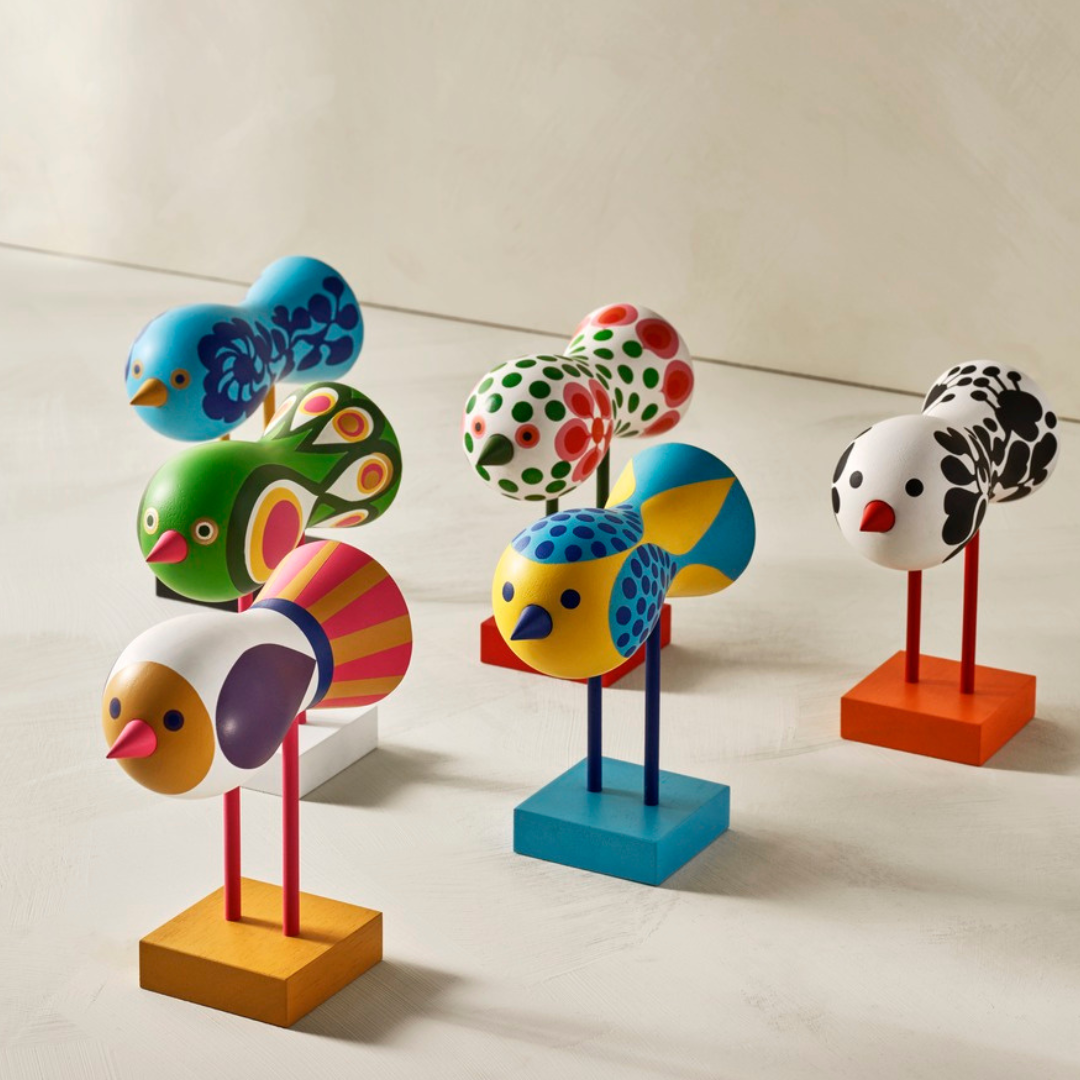 The Birds are exclusively distributed by Design House Stockholm. Each bird in this unique collection is made from high-quality beech wood and hand-painted with water-based paint in the famous vibrant 60s patterns.