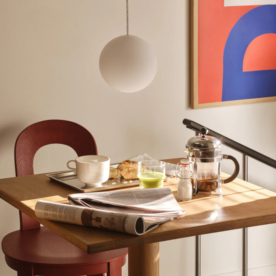 The Luna pendant lamp from Design House Stockholm is made entirely of mouth blown glass. The pendant is attached to him with an acrylic cross, and the rest of the cords are concealed in the same pendant, so that nothing distracts attention from this very natural (moon) Luna's light.