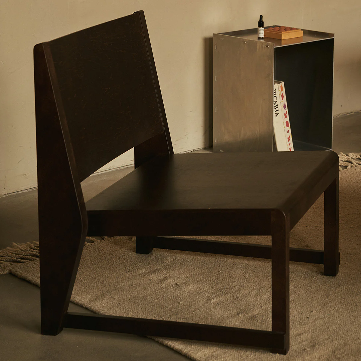 Thanks to its low seat height and compact dimensions, the chair is ideal as a reading chair, extra seating, or a relaxing lounge chair in a minimalist interior.