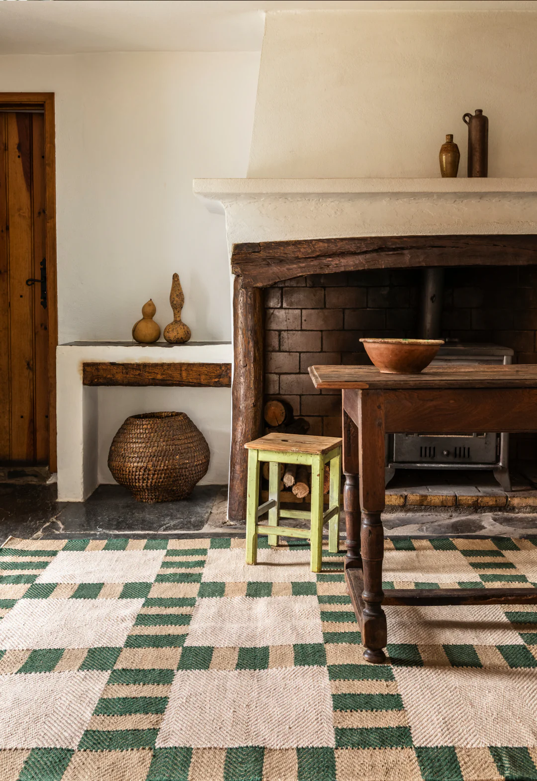 The “Late Breakfast” collection consists of three handmade rugs made of natural plant fibers with the clear, graphic signature of the Danish Evelina Kroon.