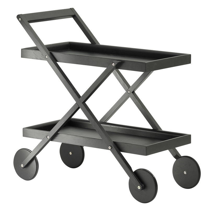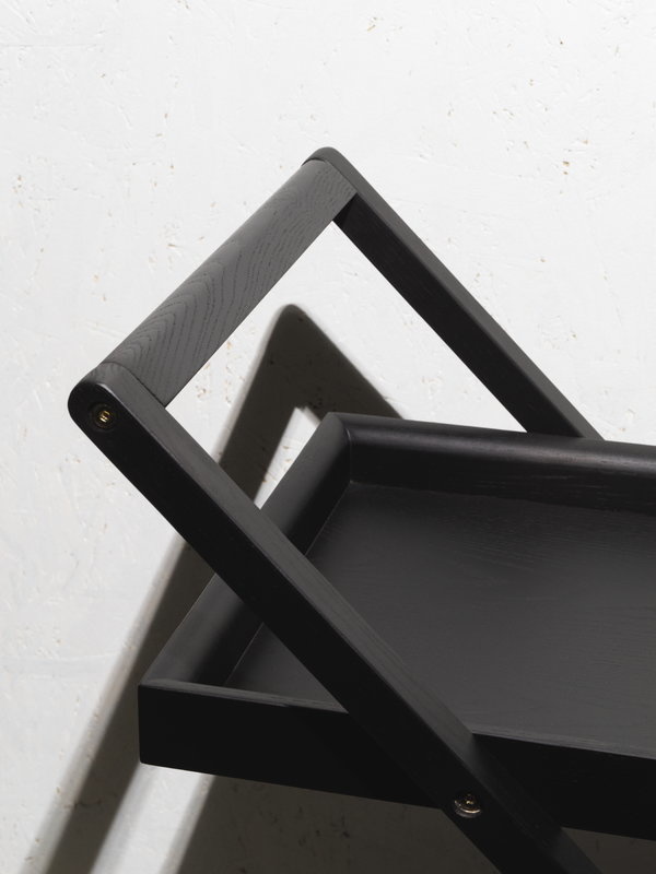 Material: Black-stained ash. The rubber-rimmed wheels ensure a silent, stable roll, and also leave no marks on the floor.