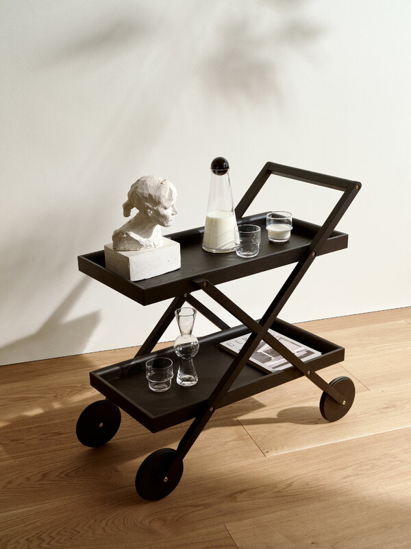 "Roll in Roll out" with this handy trolley from Design House Stockholm easy for your flowers, afternoon tea, drinks or books. In itself, this is also a separate piece of furniture that stands out. The Gunilla Allard trolley is Scandinavian design at its best. Just perfect to have at home to help with serving dishes. And of course for taking coffee, books and stationery in a working environment. Simply put: “Why bring glasses, food, drinks and more if you can roll them too?