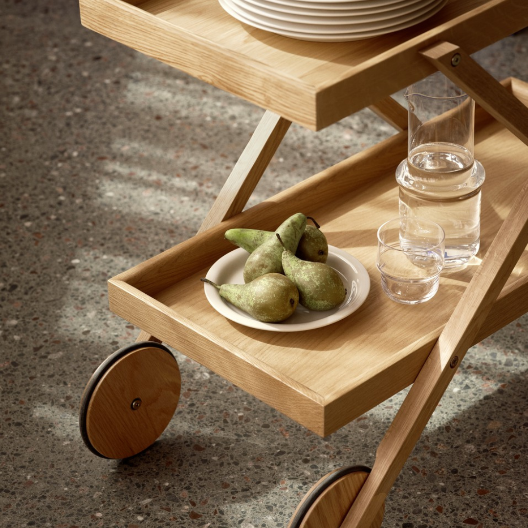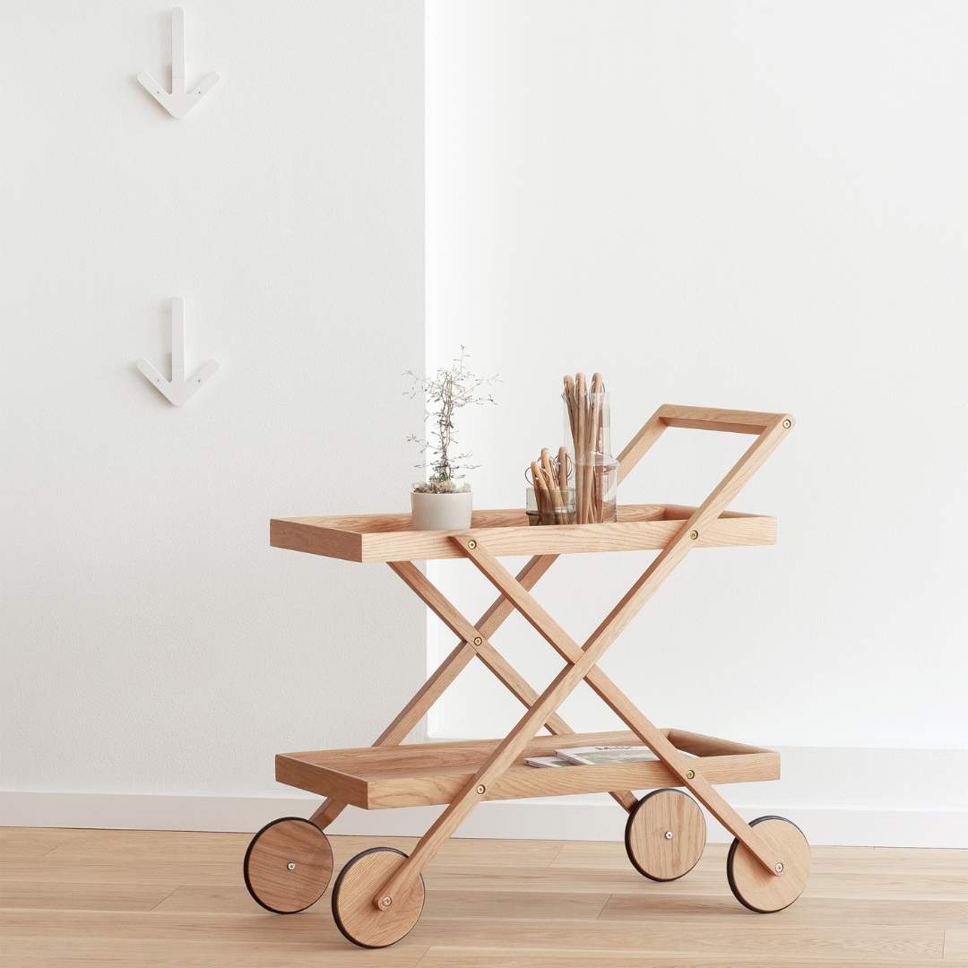 I wanted to make a flexible and slim trolley that supports and improves the entire range of accessories from Design House Stockholm. I have chosen oak for both strength and character; With this I can form a clear graphic profile. "It is a challenge for me to work in wood. You would think you should allow slightly thicker dimensions, but Exit Trolley is made as thin as possible. The natural looking wood gives a homely feel that is suitable for both private and private use. and public spaces. "