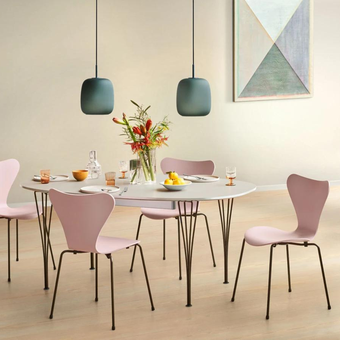 The B612 Super-Elliptic Table 150 cm is an extremely versatile and incredibly durable piece of furniture and a design classic. This table can be perfectly combined with six Series 7 chairs, also designed by Arne Jacobsen for Fritz Hansen.