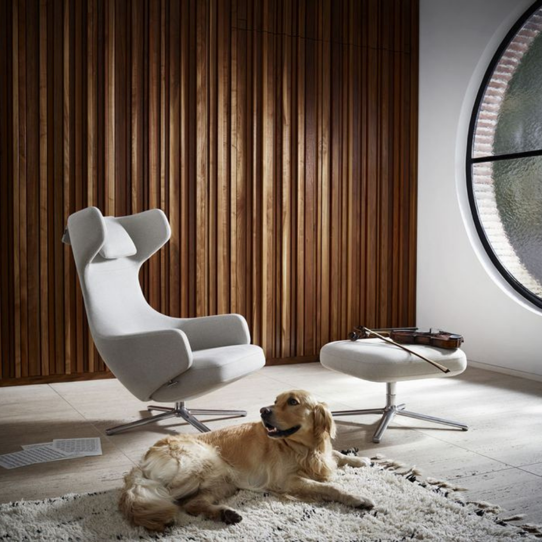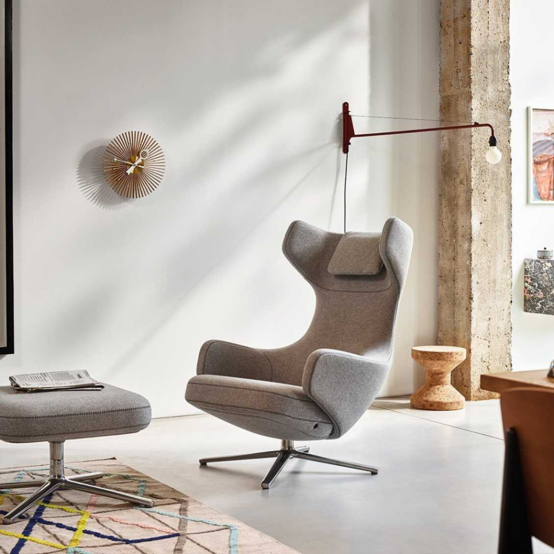 Upholstery: in Vitra Cozy (80% virgin wool, 20% polyamide), Vitra Dumet or Vitra Credo Cozy, Credo, Dumet, Leather, Natural Leather, Grand leather and Premium leather, all in numerous colours.