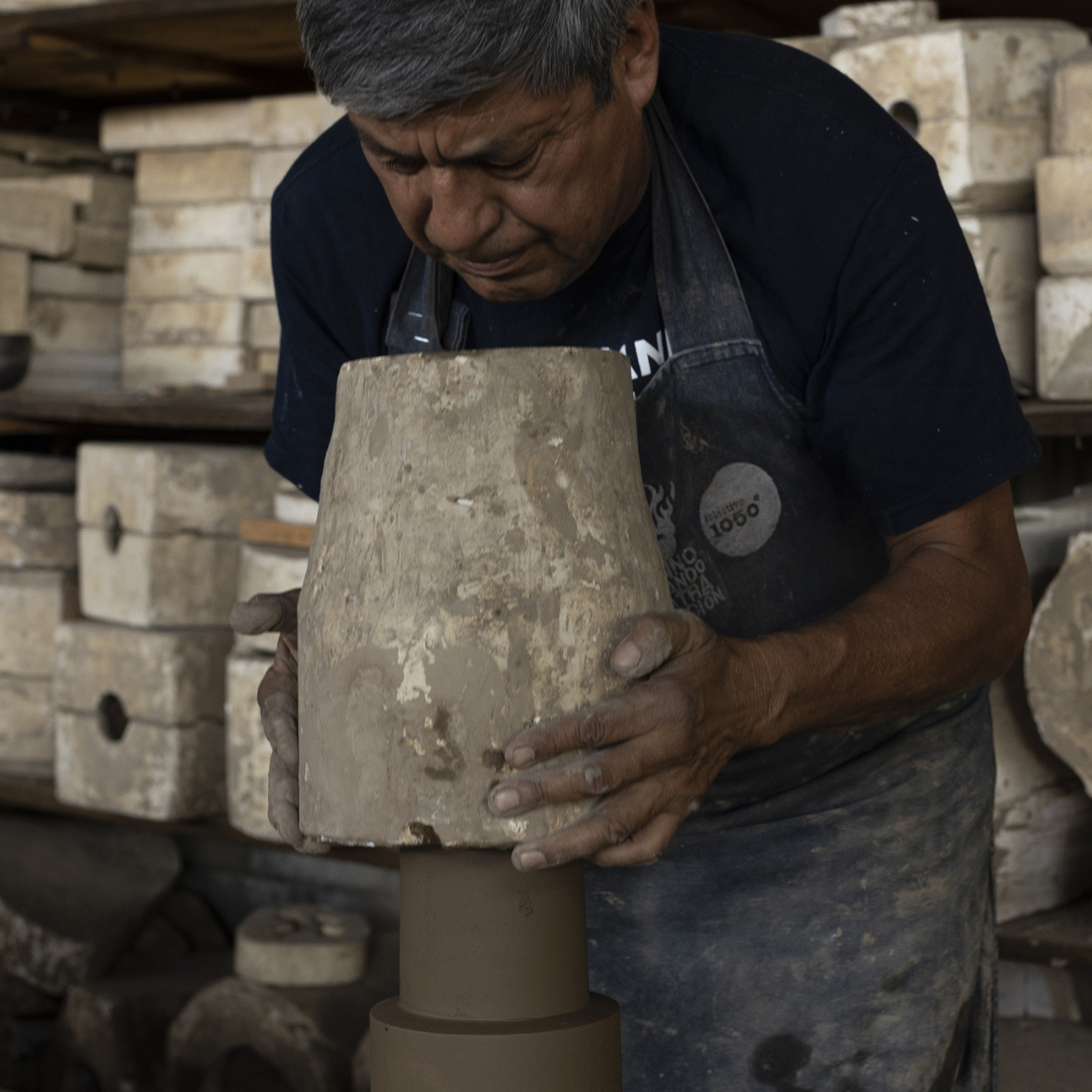 This lamp is the result of a collaboration with Caterina Moretti of Peca design studio De Barro, a handmade pendant with a ceramic base and glass shade; a beautiful combination of natural materials that come from the earth of Oaxaca.