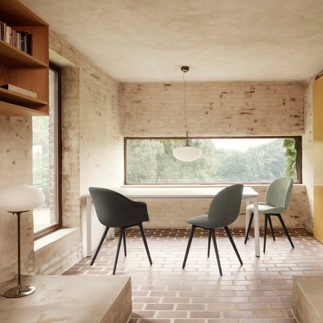In a major step towards more responsible production, GUBI has redeveloped GamFratesi’s beloved designs using a recycled-plastic composite. Utilizing advanced technology and customized material blends comprising over 50% recycled plastic, GUBI has been able to make production significantly more responsible, while retaining the same quality and performance as virgin plastic. Every variant of both Beetle and Bat will now be available in the new material – a leap forward in GUBI’s journey towards phasing out virgin plastic.