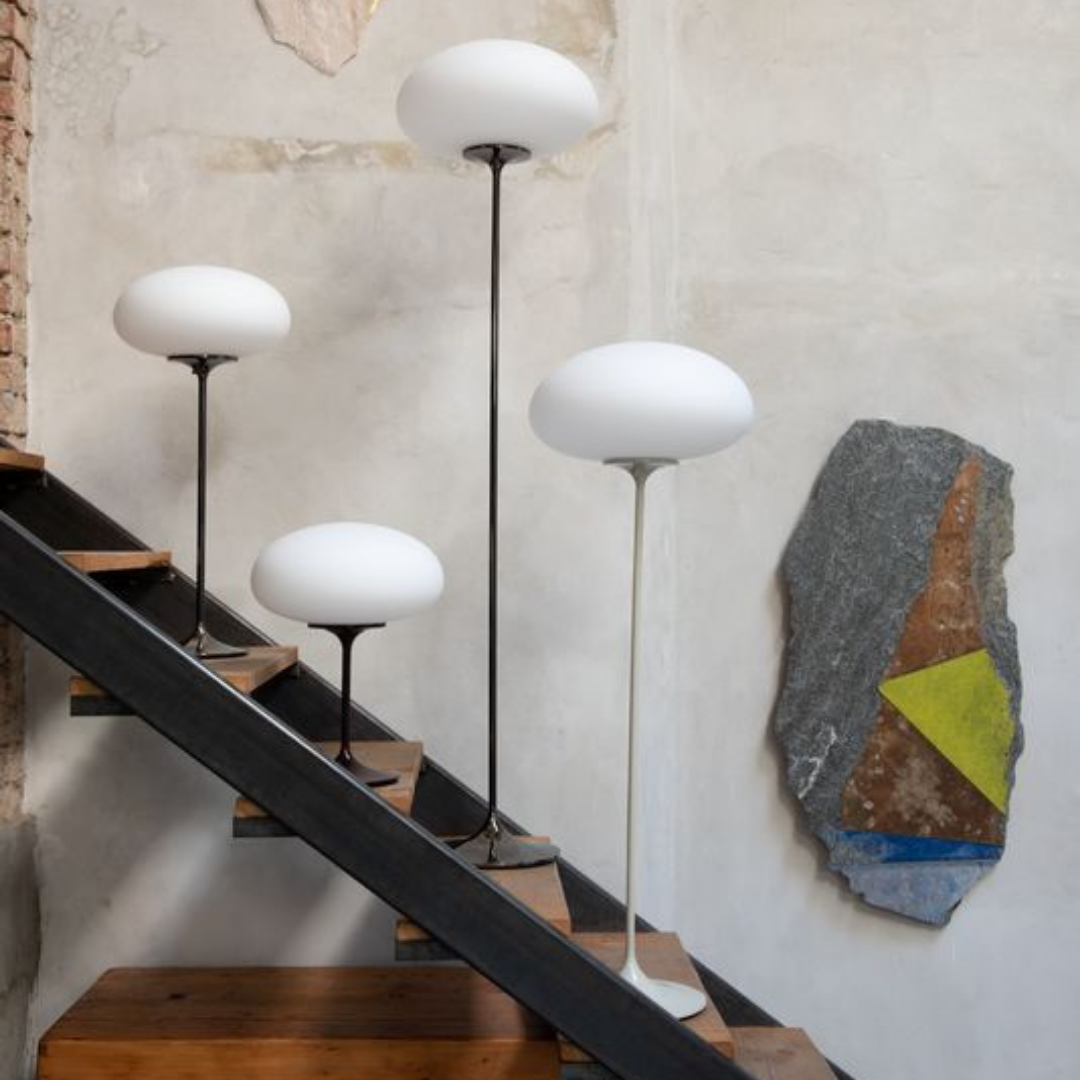 A 1962 design by legendary American designer Bill Curry, he took inspiration from nature for the Stemlite collection: the sleek, cast metal base resembles a sturdy but delicate stem of a tulip, which carries the beautiful glass shade like a fragile button waiting to open.