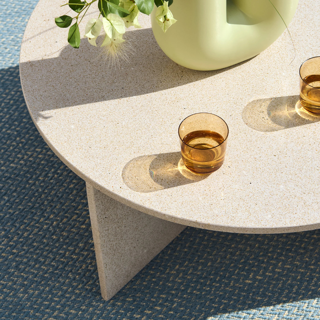 The Halves Coffee Table by Muuto, designed by MSDS Studio, is a powerful yet refined statement in terrazzo. Combining a tactile surface with a clean, geometric shape, the table feels effortlessly at home in both indoor and outdoor spaces.