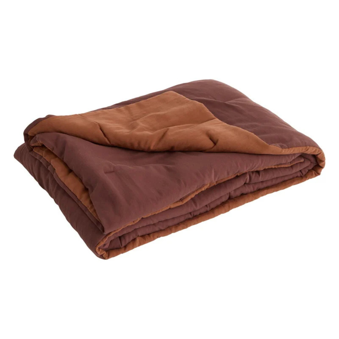 Made from 100% organic cotton, the Air Quilt feels soft and comfortable, while the lightweight recycled polyester filling provides subtle warmth and volume. The soft iron red hue gives the design a warm, inviting look while also adding a calming pop of color to the interior.