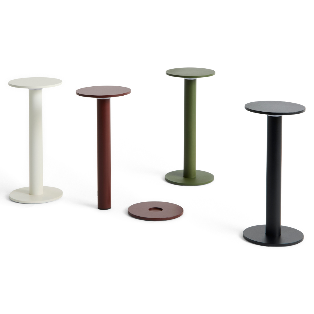 A compact, portable lamp designed to provide light without drawing focus to itself. Its slim profile takes up little space, while the downward cast of light gently illuminates the surface beneath it. An integrated magnet in the base allows attachment to metal surfaces, and a flat steel base is included for use on non-magnetic surfaces. Lightweight and rechargeable via USB-C, it offers cordless flexibility and effortless mobility. Available in various heights and colour options, it works equally well on its own or arranged in groups, making it suited to everything from intimate settings to shared spaces.