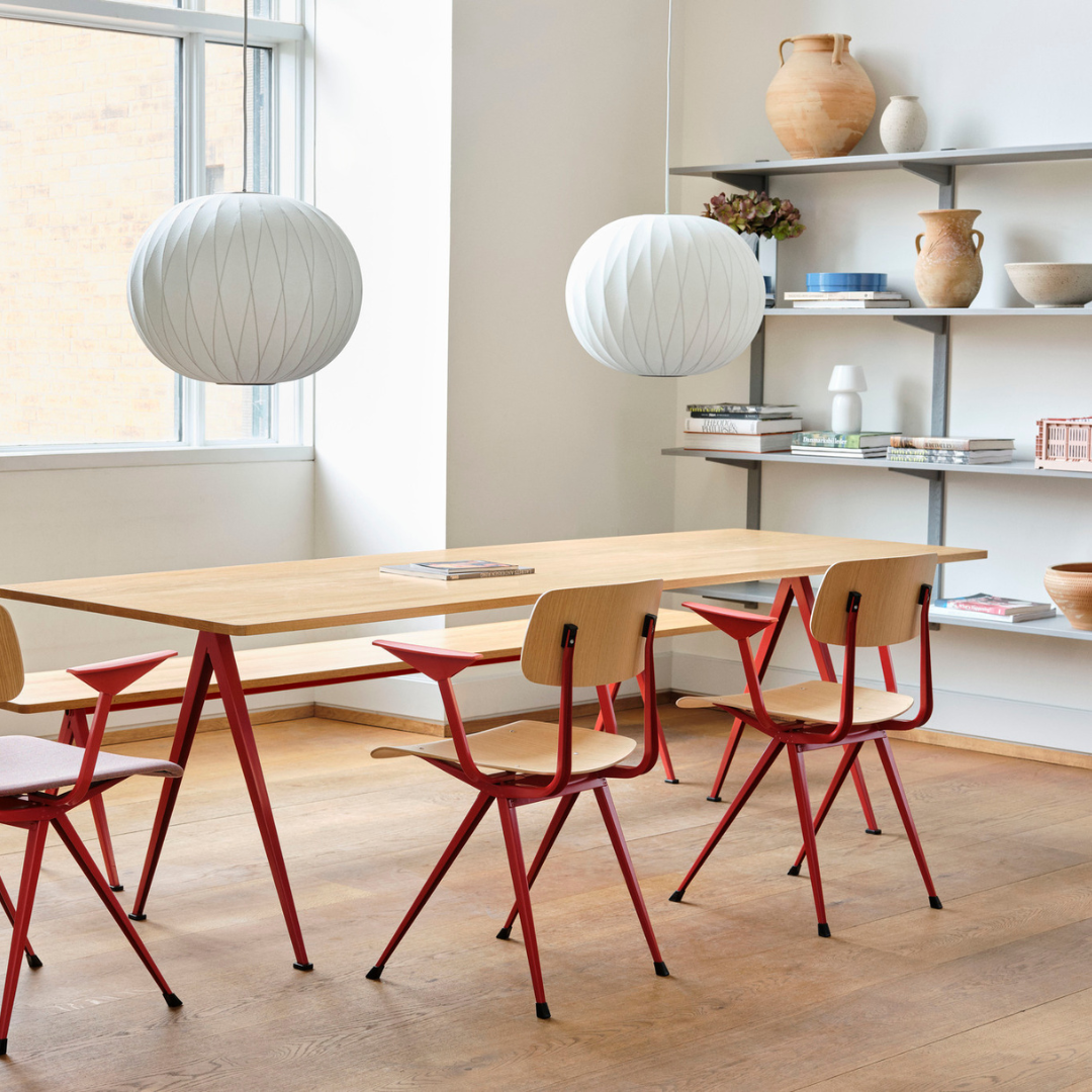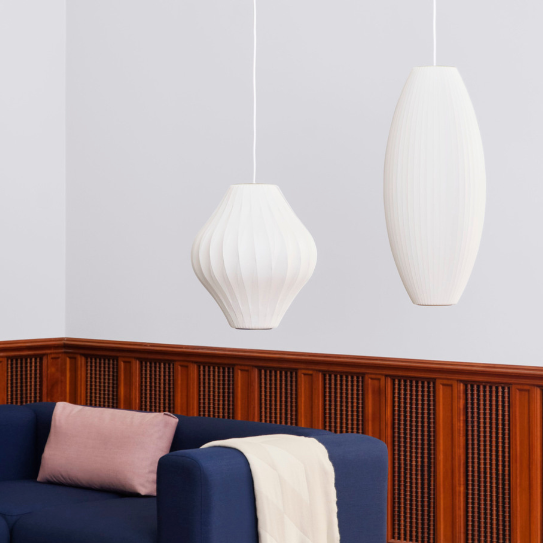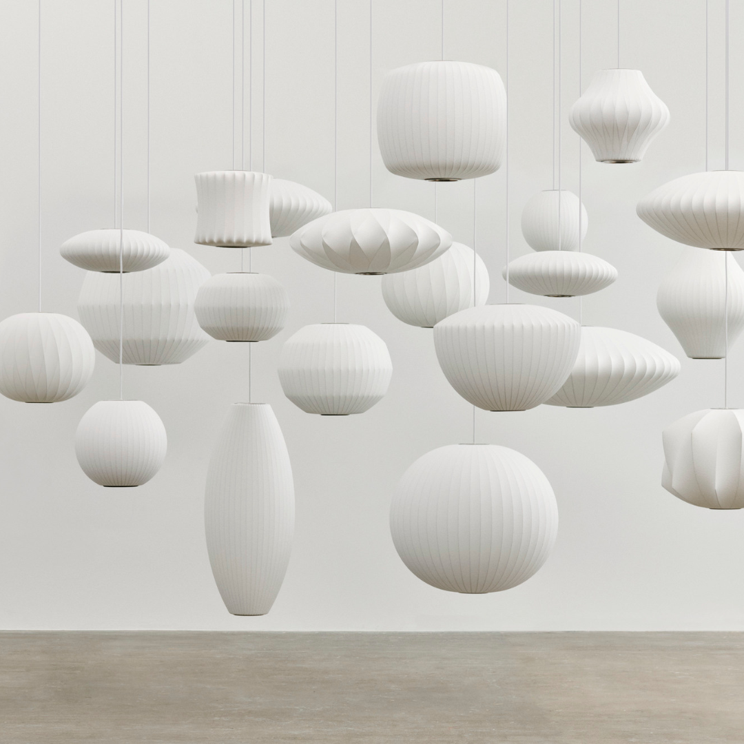 Designer George Nelson was inspired by a set of silk-covered Swedish pendant lamps he saw hanging in 1952.