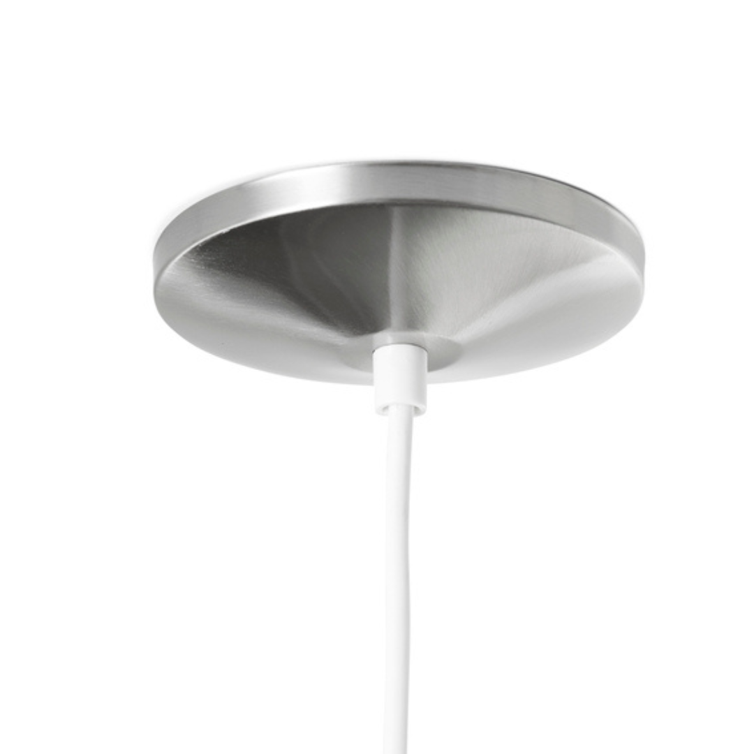 This extra-large lamp fills a room with soft, diffused light as it floats above your head, suspended from a sturdy steel ceiling plate.