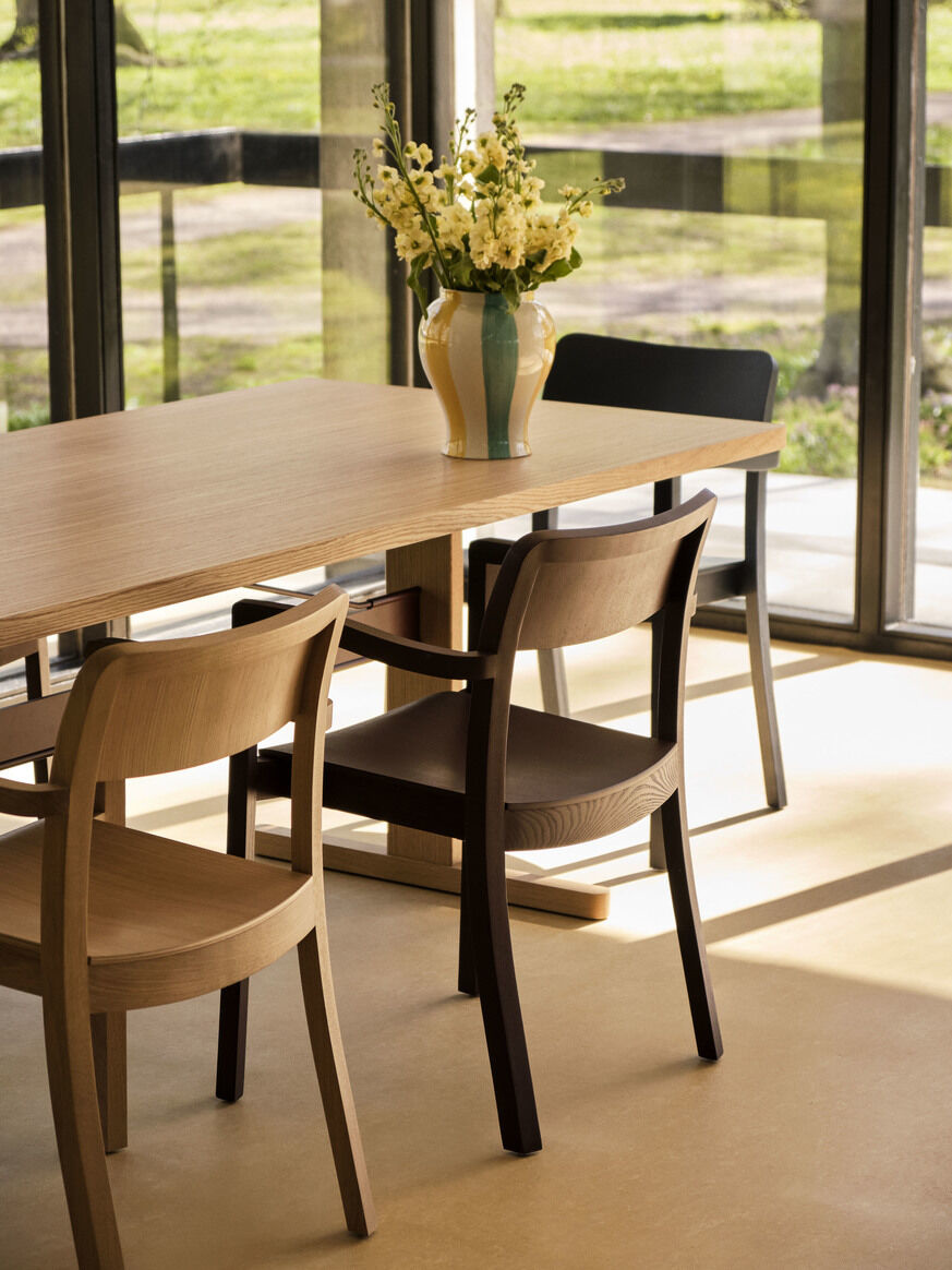 Julien Renault was inspired by different styles such as the Shaker furniture, the architecture of Christchurch, New Zealand, as well as the Thonet-Mundus steam-bent styles.