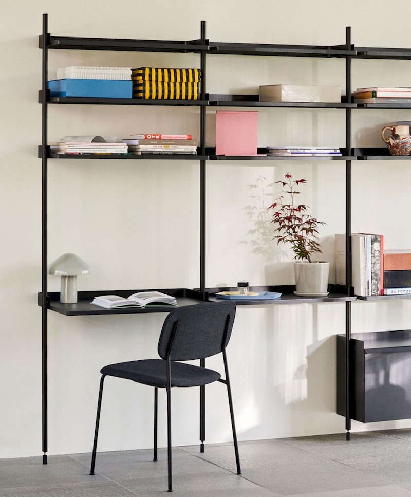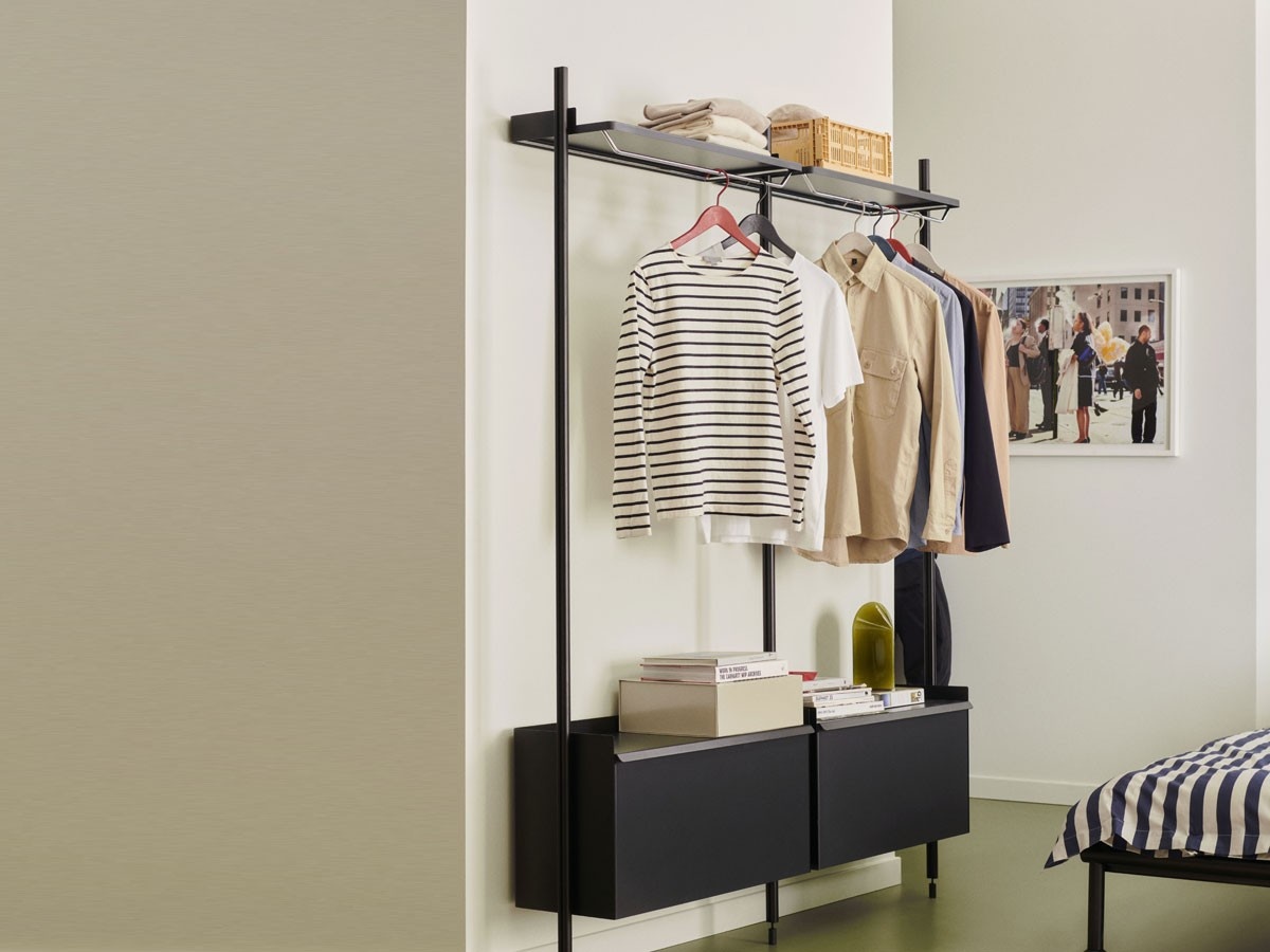 The Pier system is easy to rearrange and rearrange to suit the user's needs and includes elements specific to work, cloakroom or your home living room.