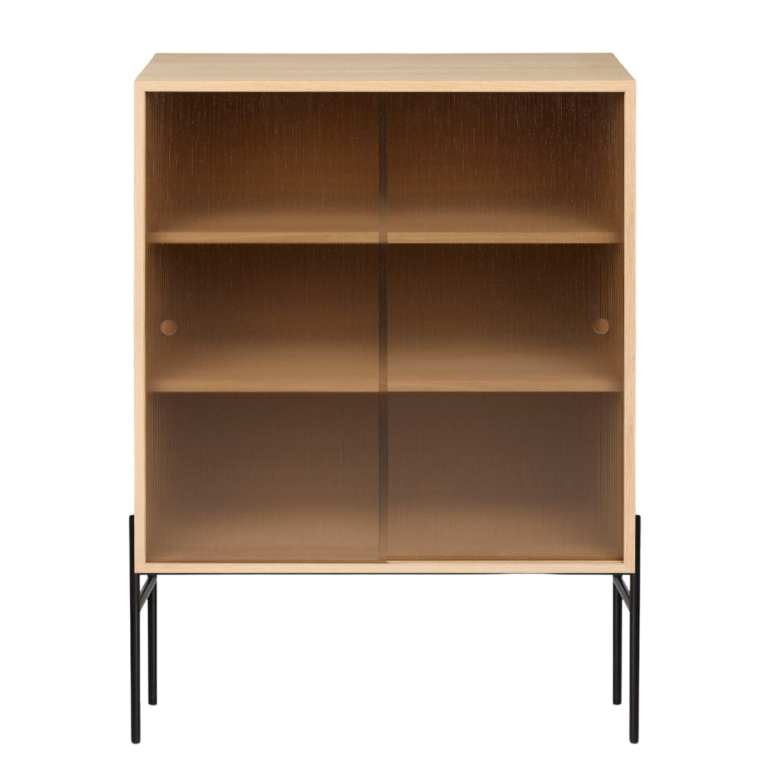 Finely fluted and tempered, with a tint of bronze, the intriguing matt and semi-transparent front hints at what’s inside without giving away too much. Meanwhile the perfectly proportioned oak frame and sleek metal legs keep everyday items safely stored, while still allowing you to elegantly display your favourites on top.
