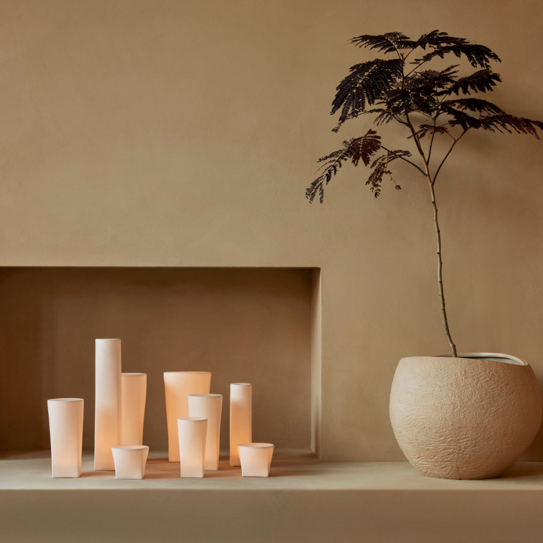 A beautiful and lasting alternative to traditional candles, the Ignus Flameless Candle uses LED technology and battery power to create soft, atmospheric light. The collection’s six sculptural forms are shaped from bone china with a matte finish. Each candle is dimmable to three different settings.