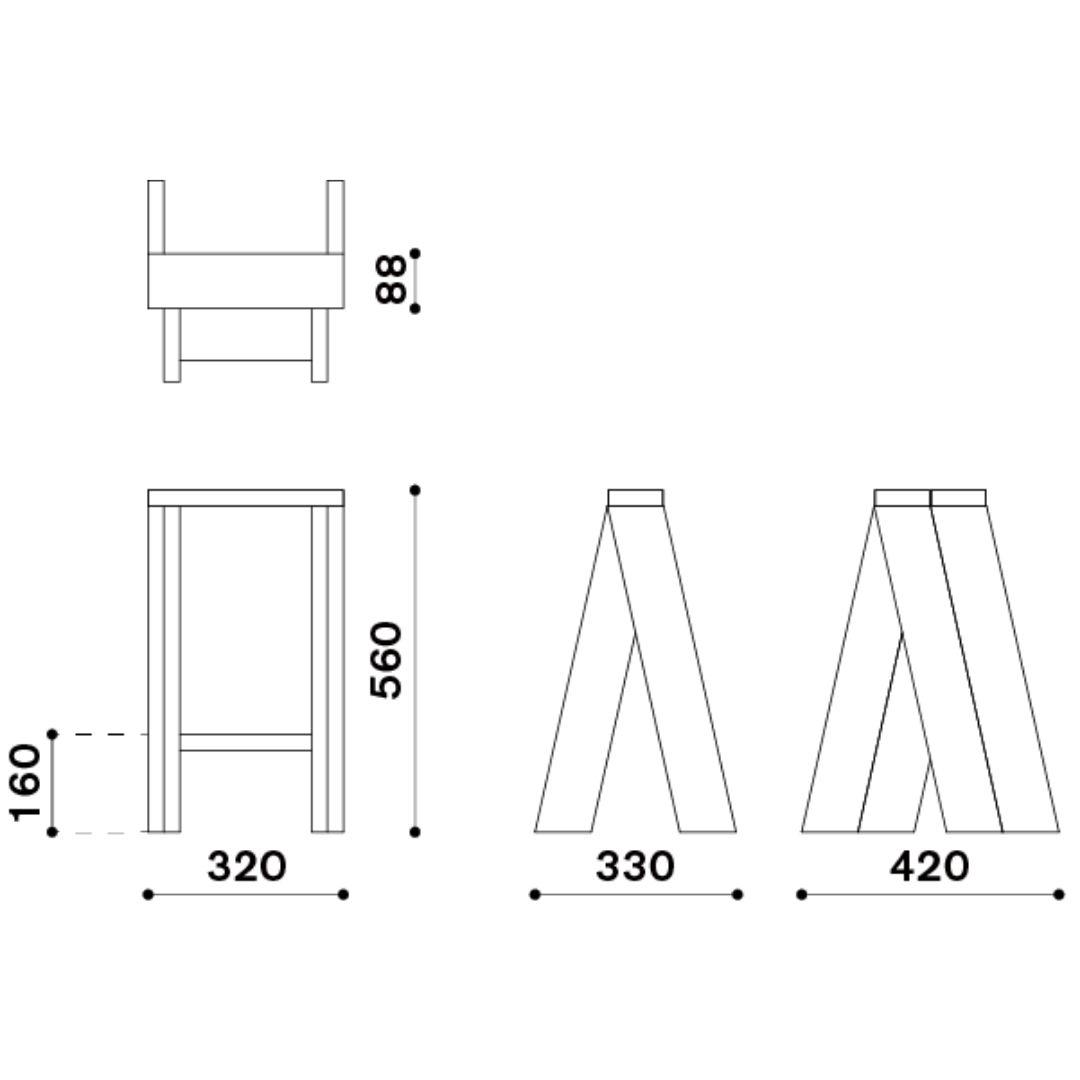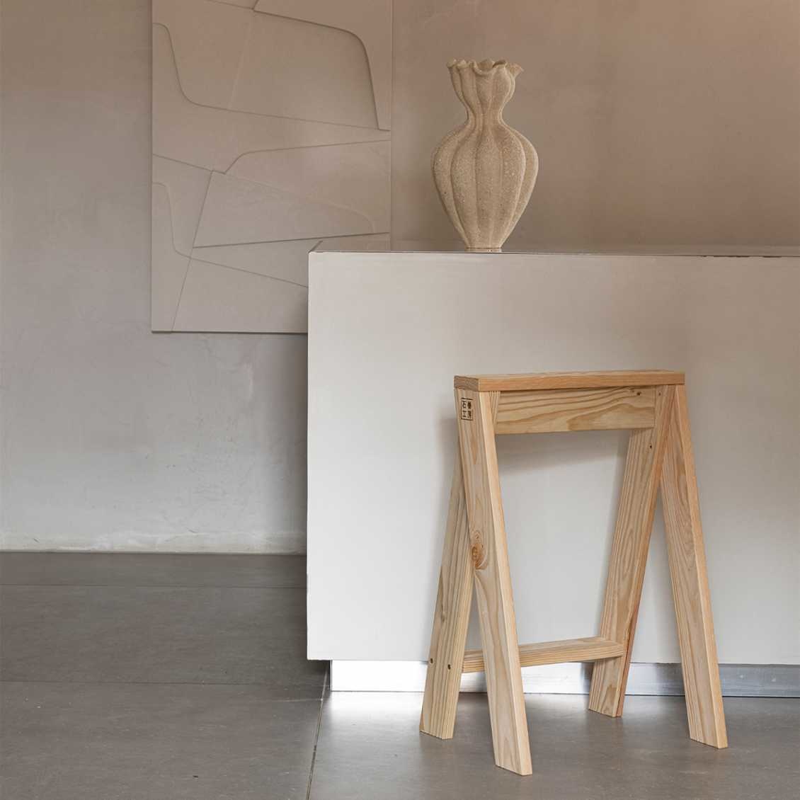 The bar stool is sold in a 2-pack, which you can also see in the photo. However, you can easily split them and use them separately in a typical DIY construction. You can also continue to build with additional bar stools to form a side table, for example. With us you can choose Ishinomaki AA Stool with a height of 56 or 72 centimeters. These are made from untreated Douglas fir.
