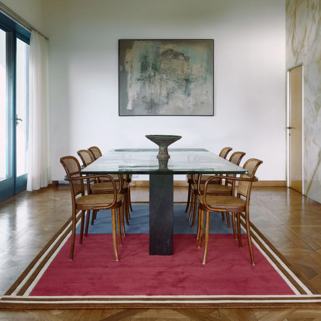 "We started sketching something more graphic and bold – rugs that truly claim their space. The idea draws from Gio Ponti’s approach to pattern and colour in architecture, where everything is about balance rather than decoration.”