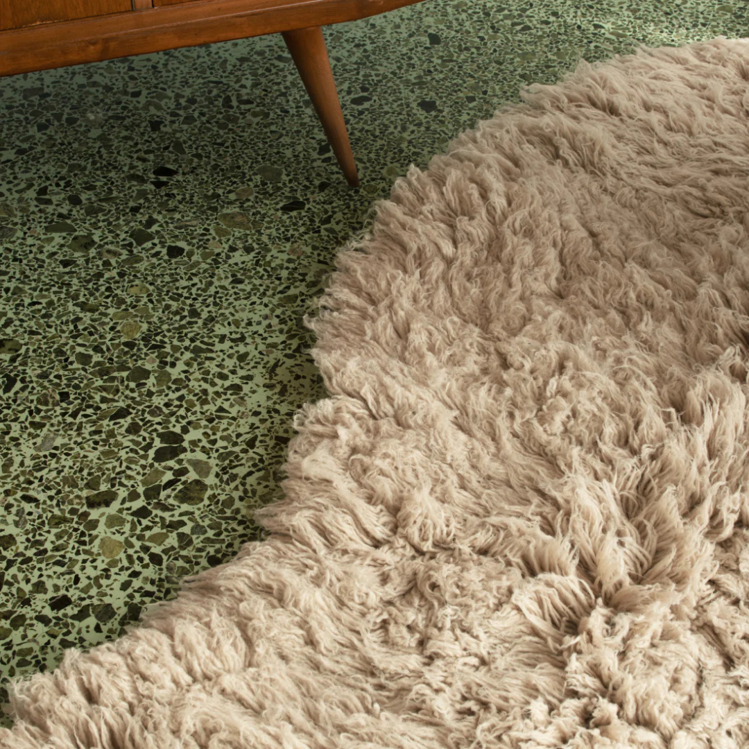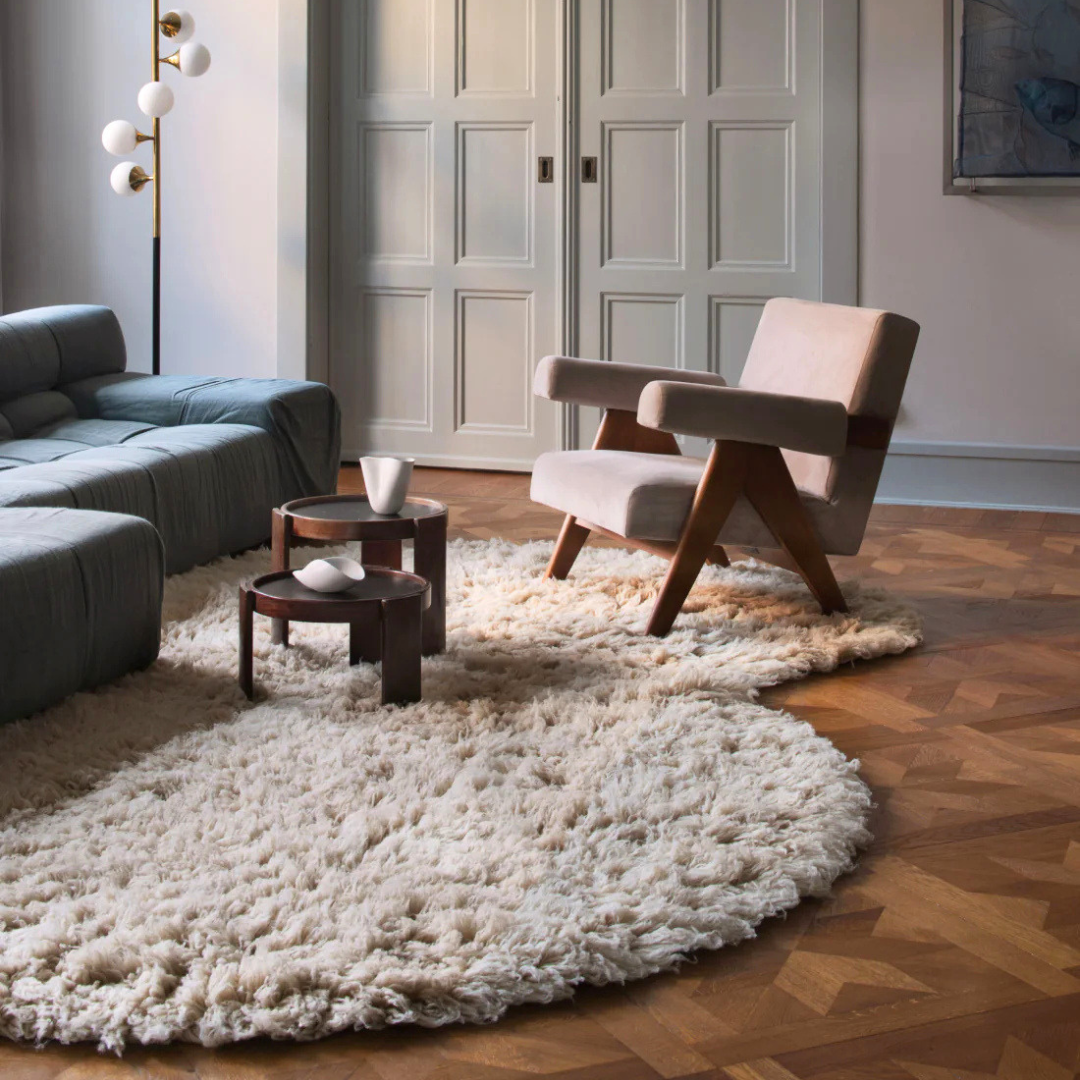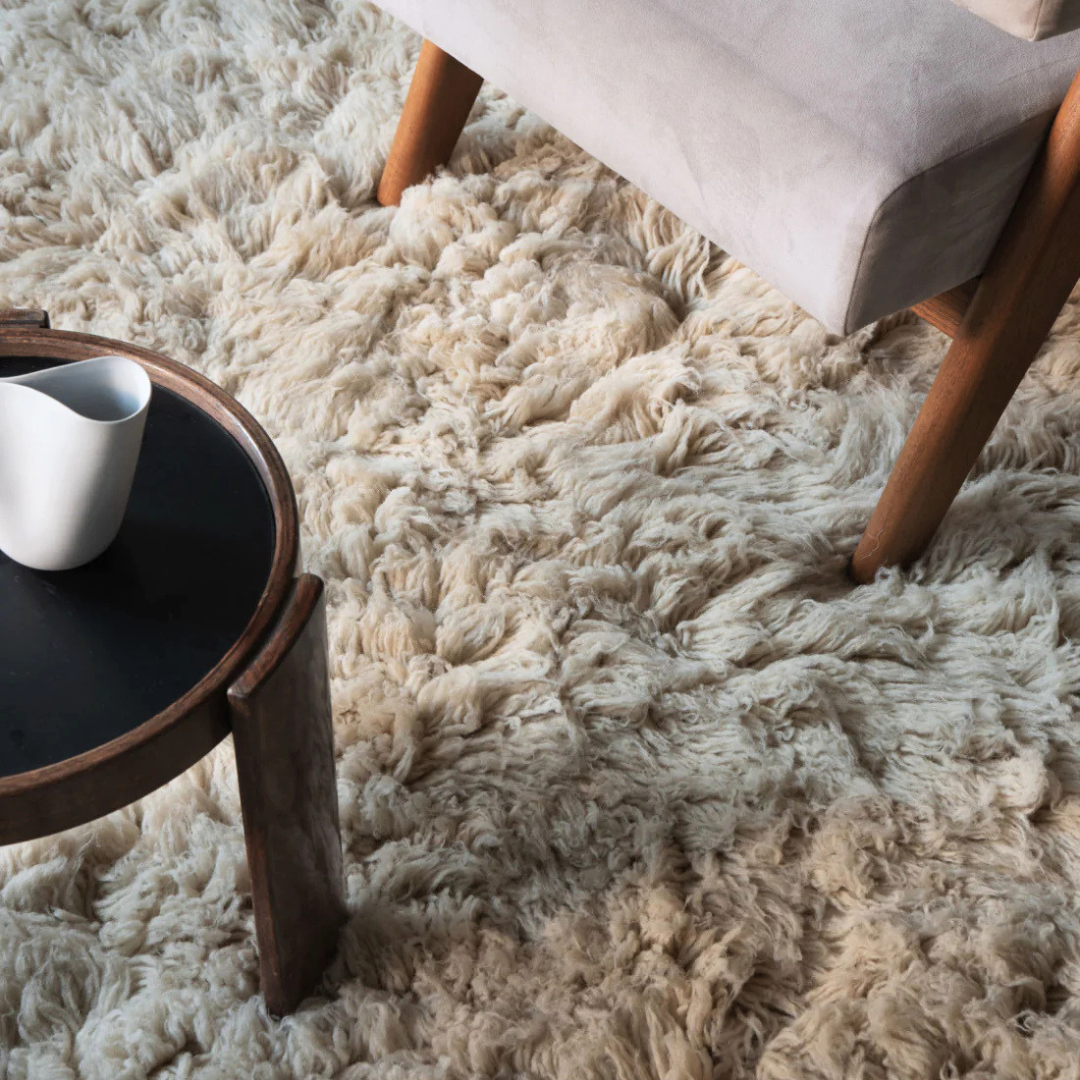 Due to the long pile and the natural material, deep-pile rugs tend to shed. By vacuuming regularly, the molting will decrease over time, but never completely stop.