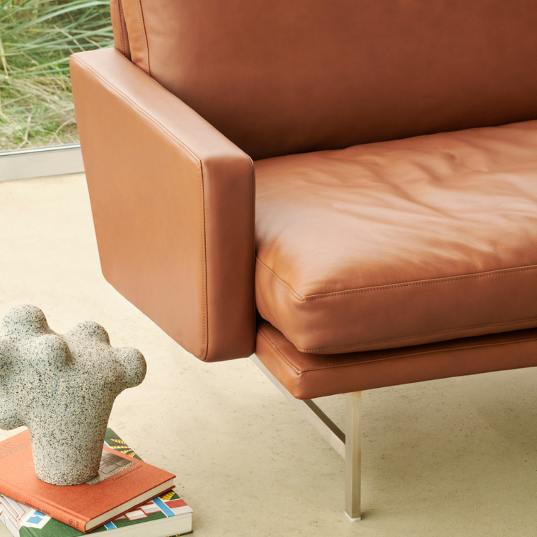 The design has a sleek design in combination with a minimalist appearance. The clear horizontal and vertical lines that are very clearly reflected in the contours of the base and the comfortable cushions characterize the sofa. The sofa is a good example of Piero Lissoni's design principle never to design for a specific function or purpose - but to design for people. You can also feel his great admiration for the designs of well known designers Poul Kjaerholm and Arne Jacobsen and their ability to be ahead of the times.