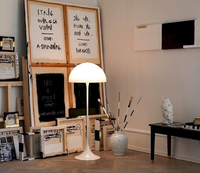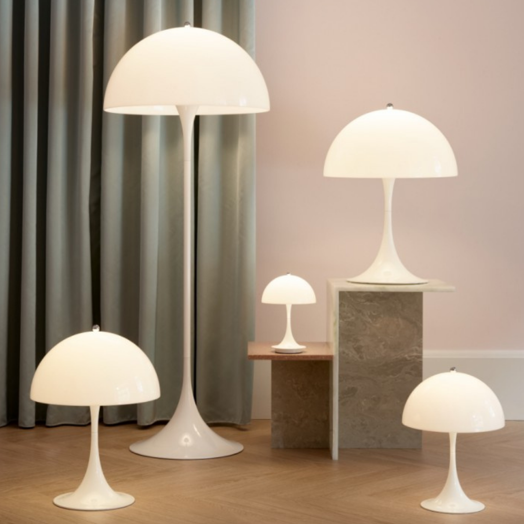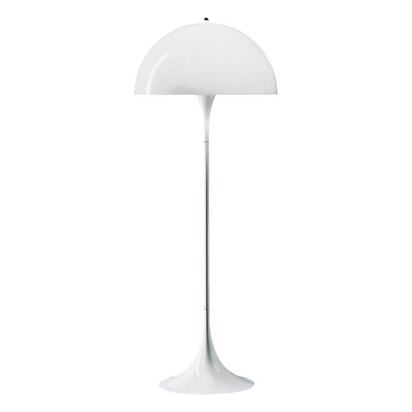 The Panthella floor lamp by Louis Poulsen is one of the most popular products designed by Verner Panton. The goal of Verner Panton was to create a lamp in which both the base and the shade would both act as reflectors. The light source is hidden under the white, semicircular acrylic shade and the trumpet-shaped base gives the lamp a distinctive, balanced silhouette and also contributes to the distribution of the light. Originally released in 1971, the Panthella is nowadays considered a design classic and is available in various sizes and colors. the floor lamp radiates a soft and comfortable light.
