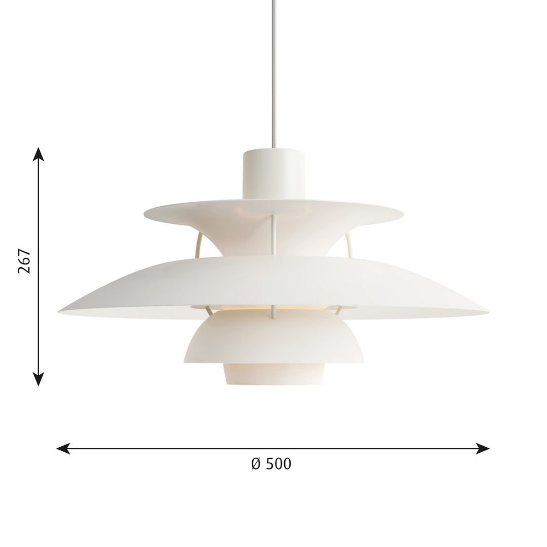 The pendant’s structure is both elegant and innovative: the beautiful, layered shades prevent glare and provide a pleasant lighting in any room. What’s more, the red cone and the small blue reflector inside the pendant give the light a warmer tone. The name of the pendant refers to its designer and the main shade’s 50- cm. in diameter. PH 5 pendant light is perfect above a dining table but also suits higher mounting in various architectural spaces.