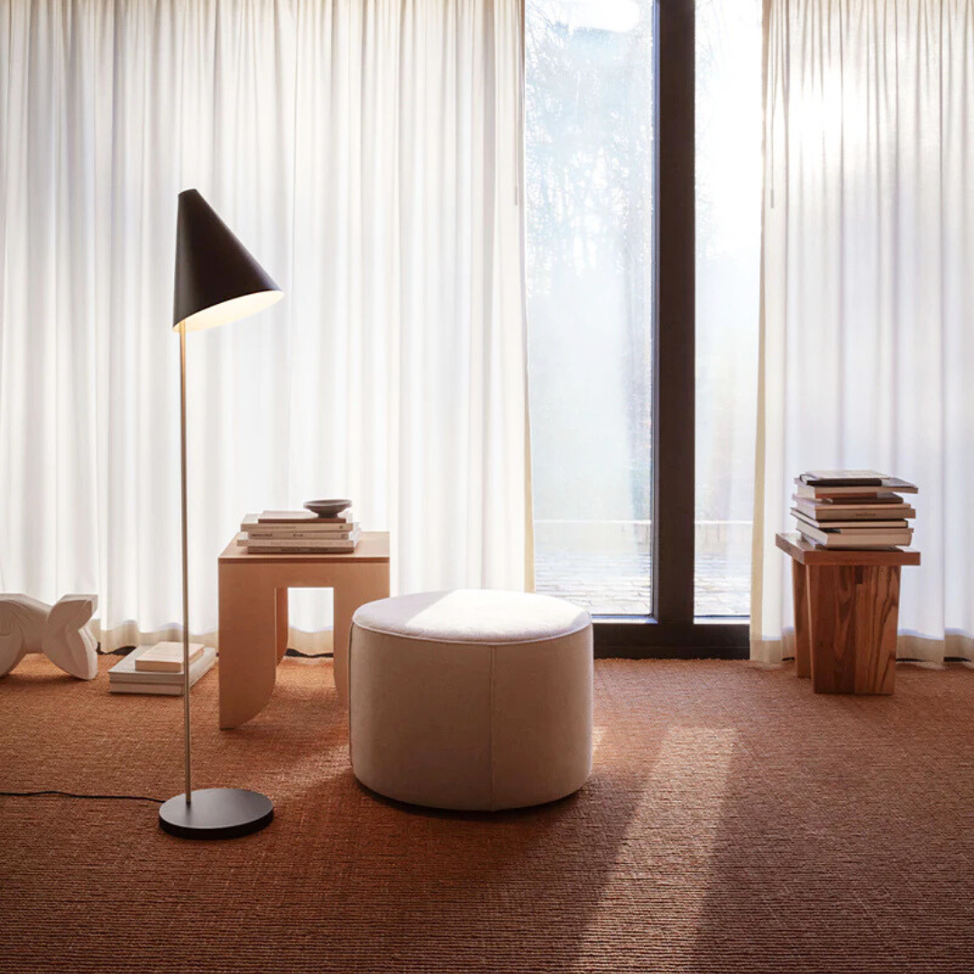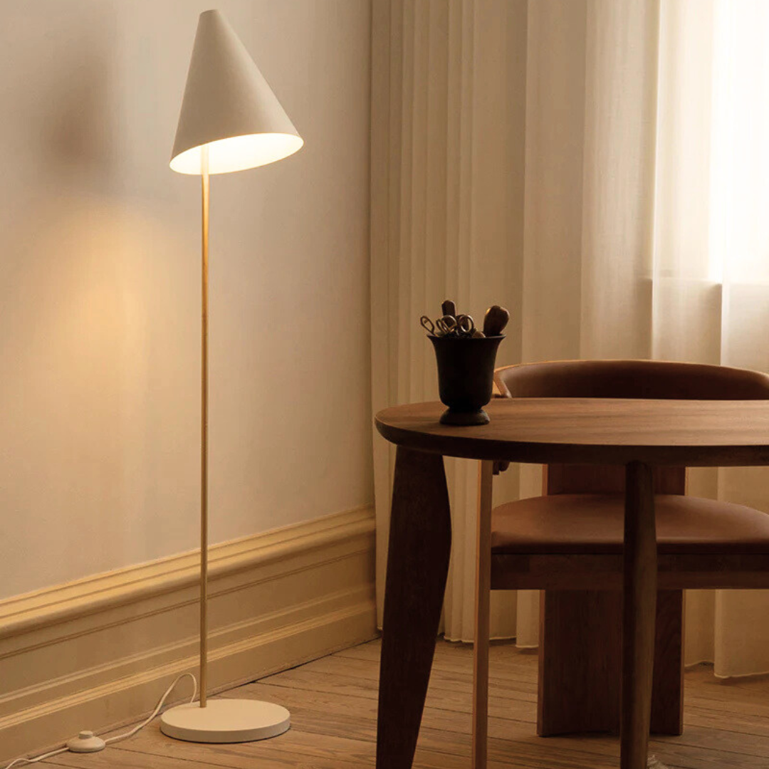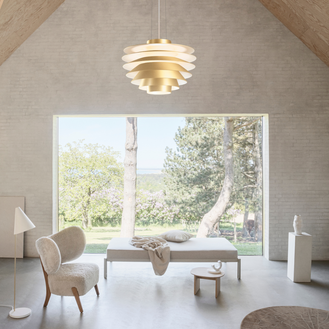 Designed by Bent Karlby in 1959, the MOSAIK collection is an ingenious lighting system based on a simple, geometrical design principle. The conical shade design ensures soft and optimized light, while the brass connectors enable a plethora of product variations to serve a wide variety of lighting needs. The MOSAIK product family consists of pendants, table, floor, and wall lamps.