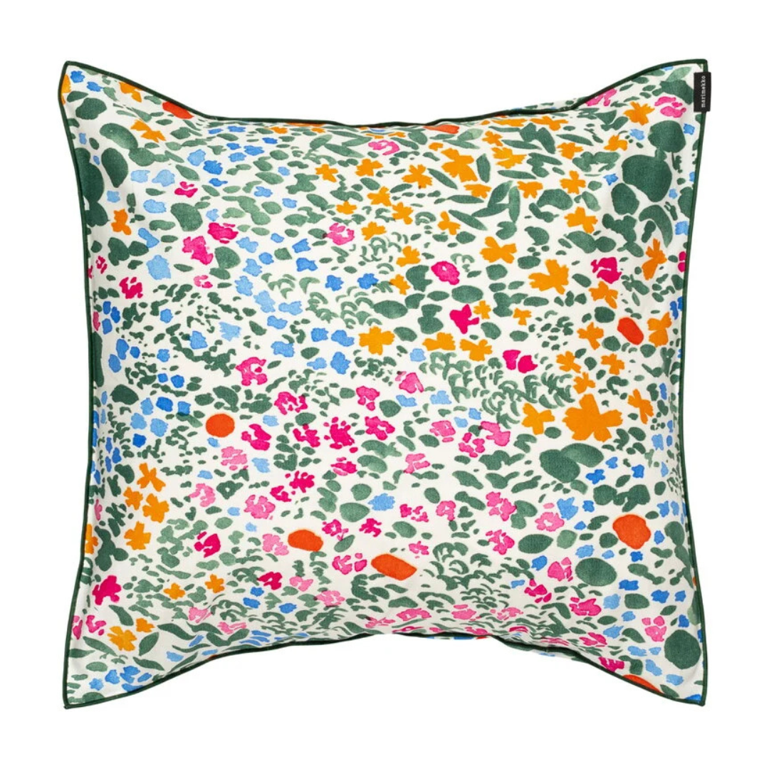 This cushion cover from Marimekko is decorated with a vibrant display of summer flowers in full bloom. Designed by Aino-Maija Metsola, this enchanting pattern complements Marimekko's range of iconic, floral-inspired prints.