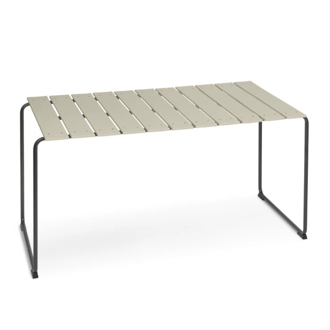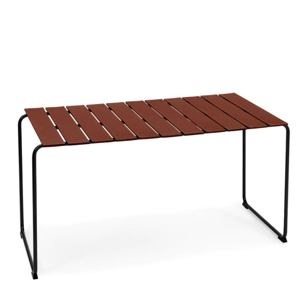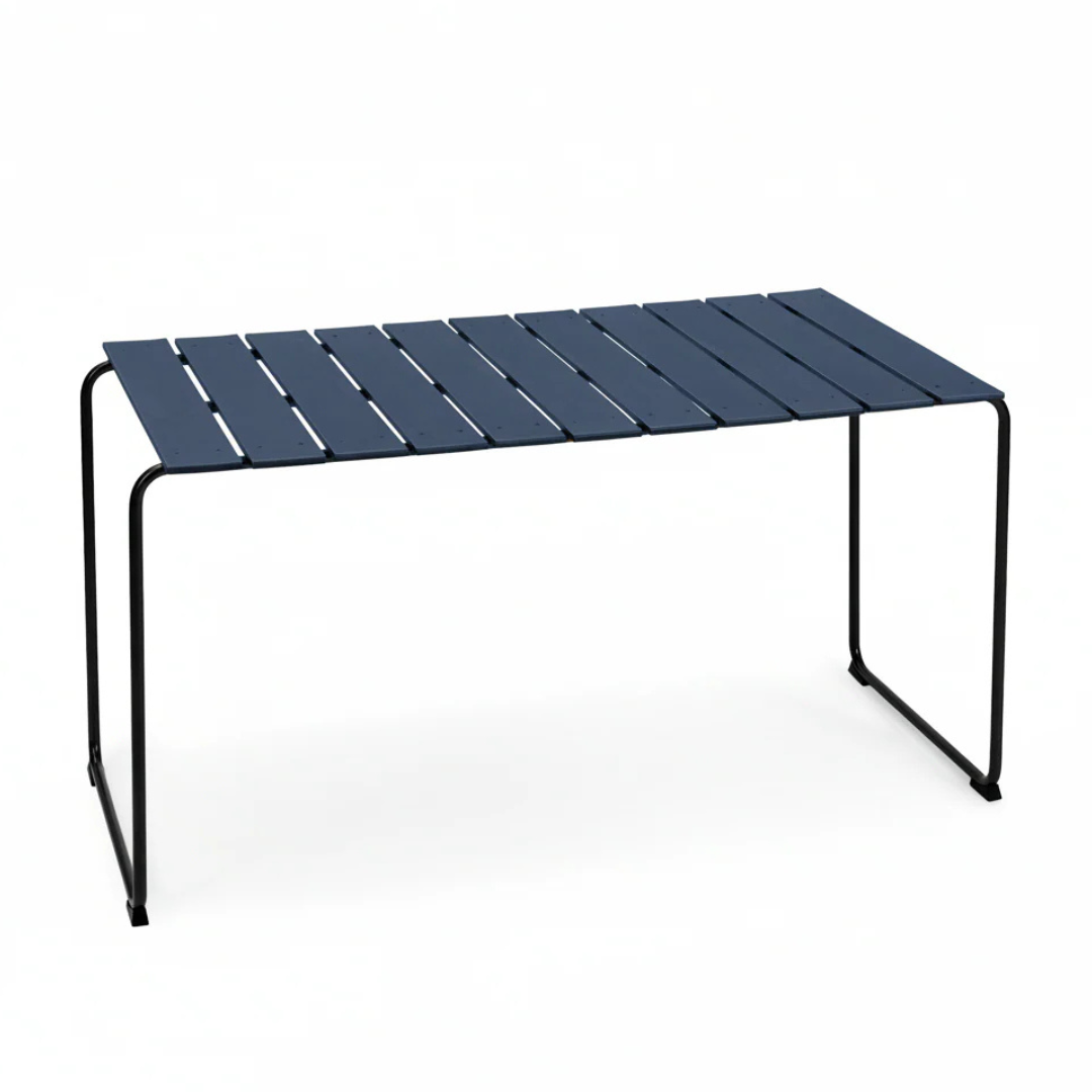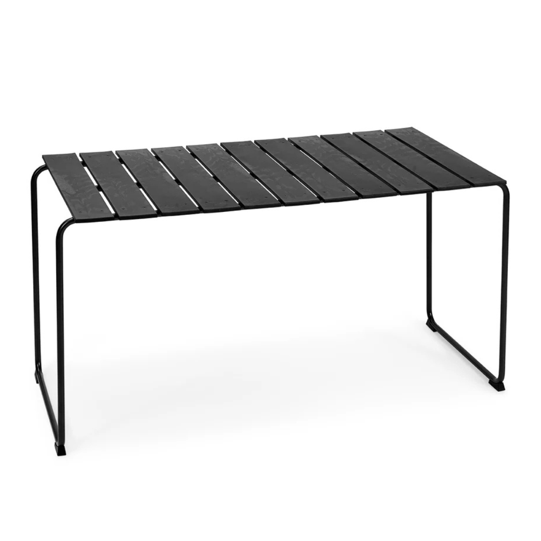 The Ocean table from the Danish Mater is a reinterpretation of the range of garden furniture designed by Nanna & Jørgen Ditzel in 1955. Besides the exceptionally harmonious shape, the materials also make the Ocean range very unique: the collection is made with plastic from ocean waste and recycled fishing nets. The chairs and table tops are formed by strong plastic slats and the airy design is complemented by black coated metal frames. All components are recyclable. Ocean collection received the Wallpaper * design award in 2019.
