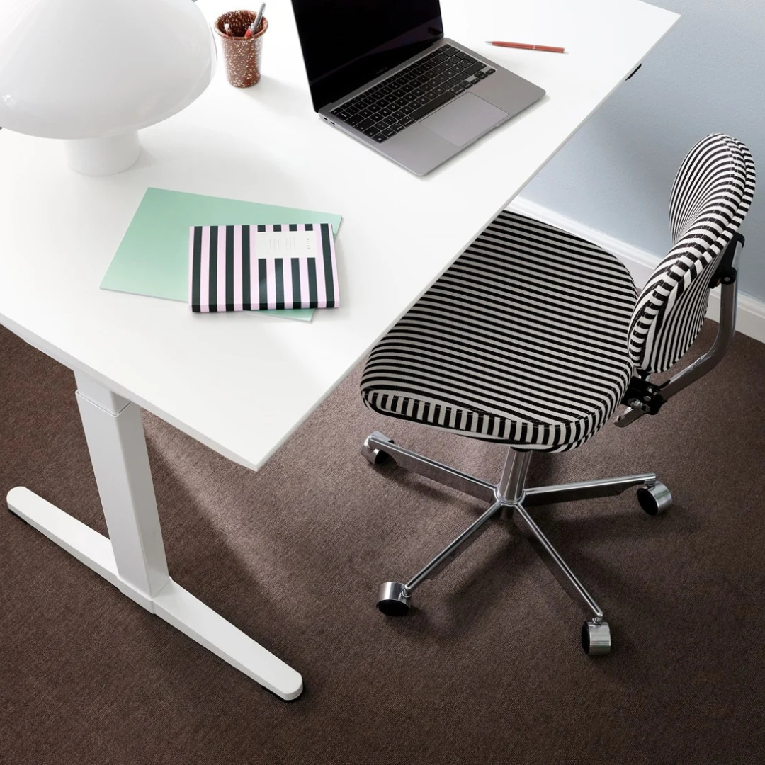 The chair has a swivel design, with a 5-legged aluminum base, allowing for maximum mobility. The chair is the ideal size for your study or office, measuring 56 x 56 cm, with a seat height of 51 cm. In addition, the height can be easily adjusted as needed, giving you full control over the way you want to work.
